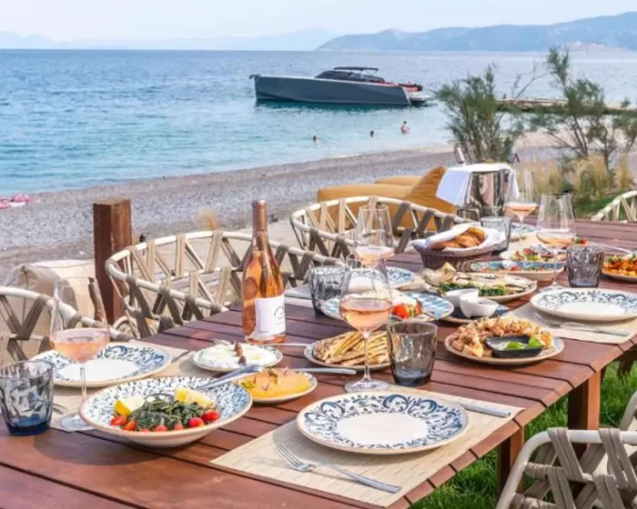 U okviru objekta nalaze se restoran i bar. Usluga ishrane je organizovana kao polupansion. Na raspolaganju su doručak, ručak i večera.