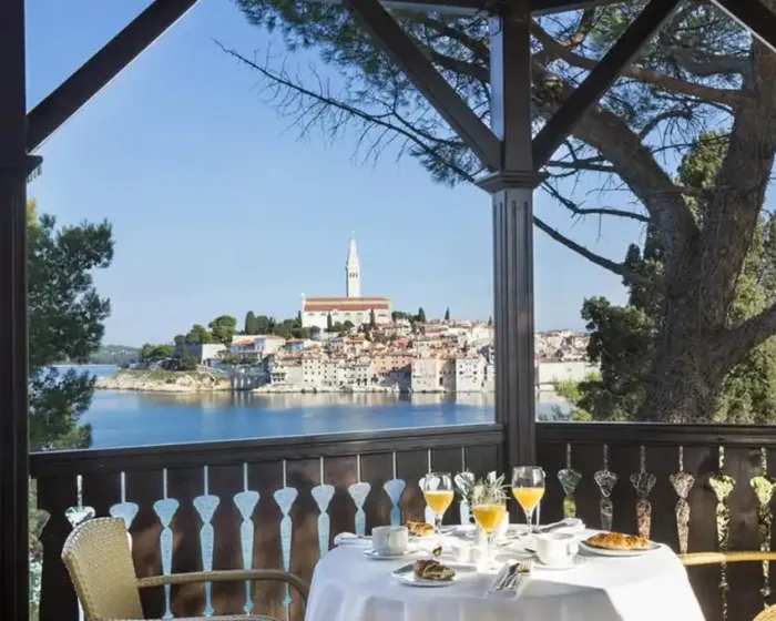 Island Hotel Katarina by Maistra Rovinj je spaktakularan hotel srednje kategorizacije, smešten na ostrvu Svete Katarine, u zalivu ispred Rovinja. Katarina je romantično utočište, okruženo raskošnim vrtom iz 19.og veka iz kojeg se pruža prekrasan pogled na Stari grad i park šumu Punta Corrente.