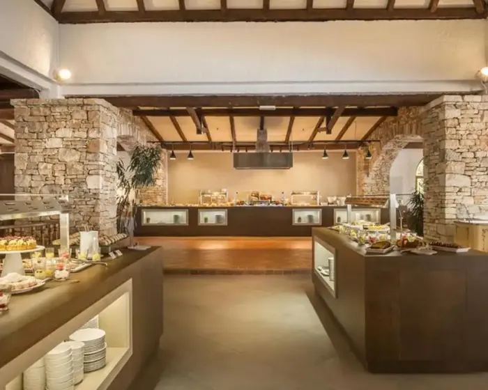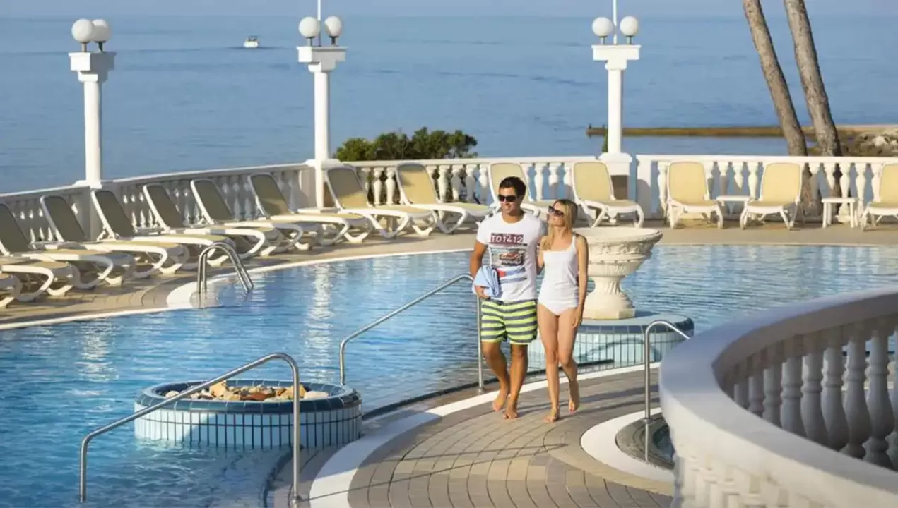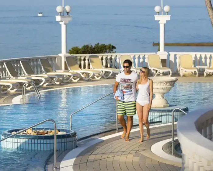 recepcija, lobi bar, restorana, bar, aperitiv bar, menjačnica, teretana, otvoreni bazen, ležaljke i suncobrani oko bazena, zatvoreni bazen, jacuzzi, ambulanta, animacija za decu, sportski tereni, parking