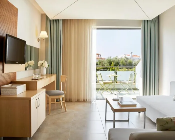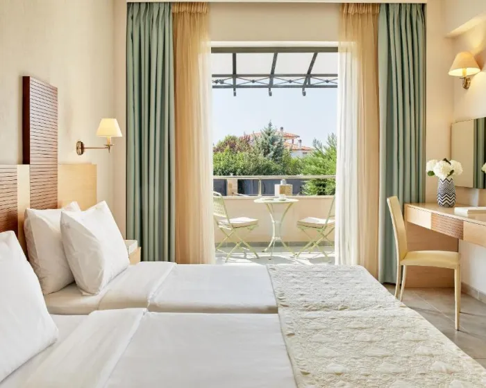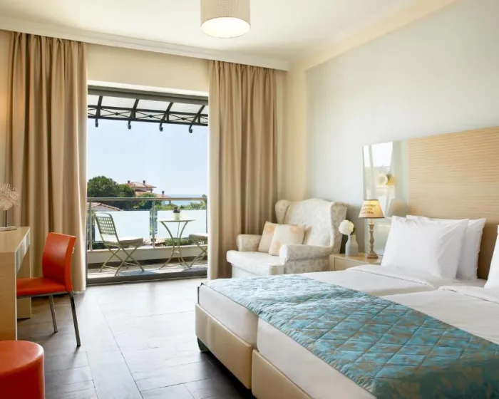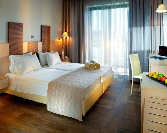 Sve sobe su klimatizovane, a većina ima balkon ili terasu sa pogledom na more. Sobe su opremljene bračnim ležajem ili sofom na razvlačenje. Na zahtev su dostupni dečiji krevetac i pomoćni ležaj. U sobama se nalazi sef, mini-bar, radni sto, mini frižider i aparat za čaj/kafu. Dostupni su i direktna telefonska linija, TV sa satelitskim kanalima, radio i besplatan WiFi. Kupatila imaju tuš ili kadu, fen za kosu, ogledalo za šminkanje, bade-mantil, papuče i kozmetički set. U ponudi su i sobe prilagođene osobama sa invaliditetom. Porodične sobe su dostupne.