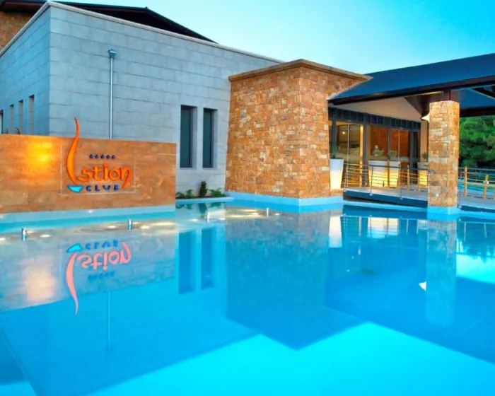 Istion Club & Spa resort se nalazi na samom početku poluostrva Kasandra, na prelepoj plaži Nea Potidea. Restorani, prodavnice, barovi i klubovi nalaze se na oko 1,5 km u centru Nea Potidee. Od aerodroma u Solunu udaljen je oko 30 minuta vožnje, a od samog grada Soluna oko 45 minuta.