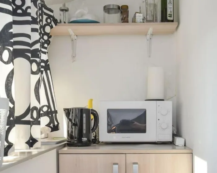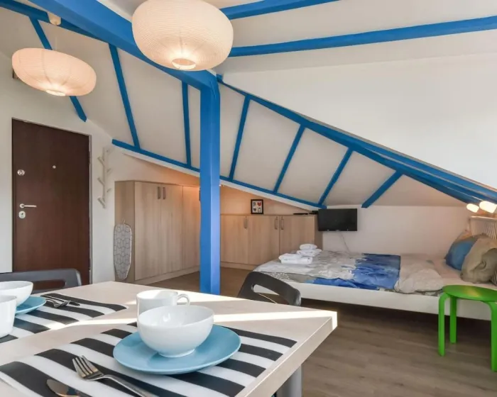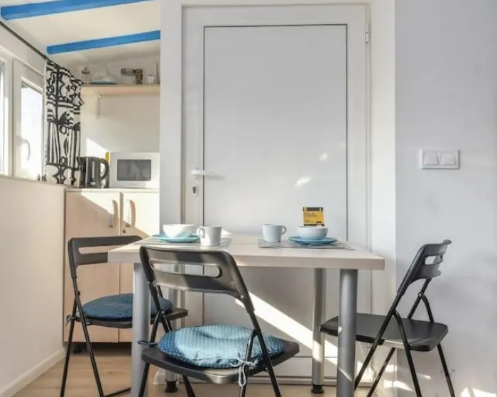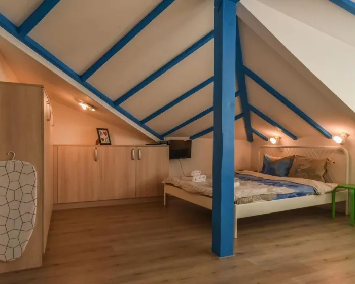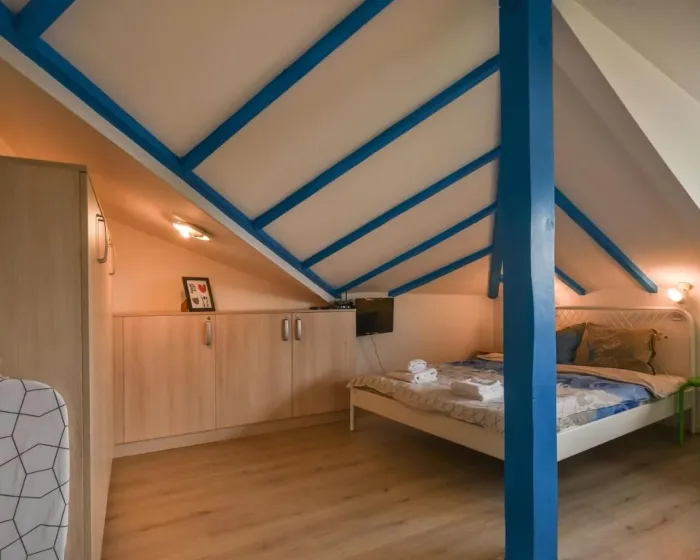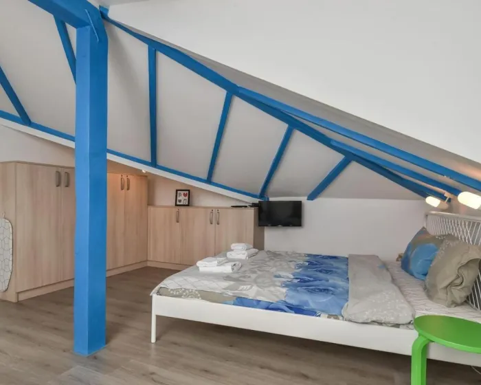 Klimatizovani apartman sastoji se od 1 spavaće sobe, potpuno opremljene čajne kuhinje sa trpezarijom i 1 kupatila sa tušem.