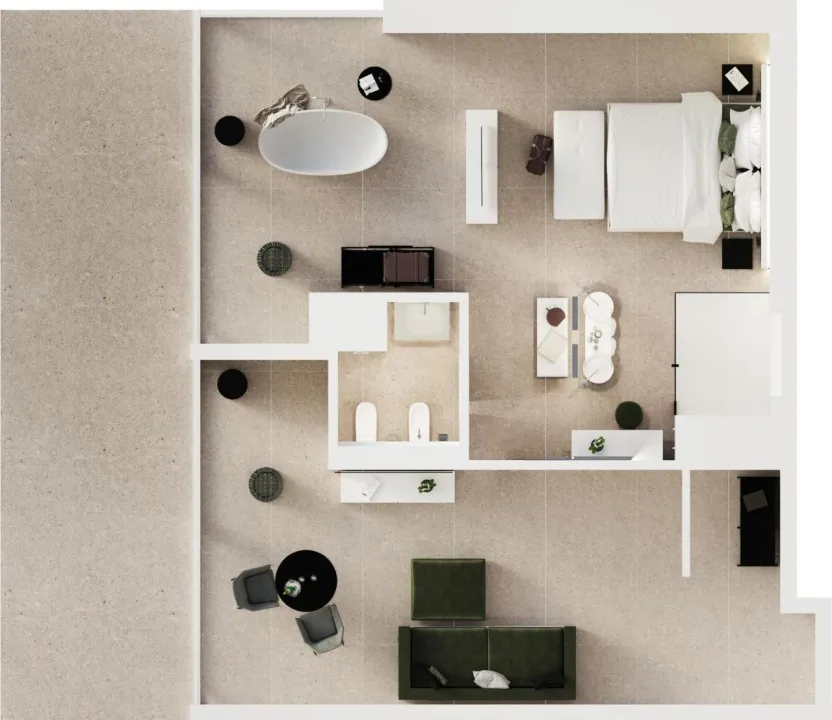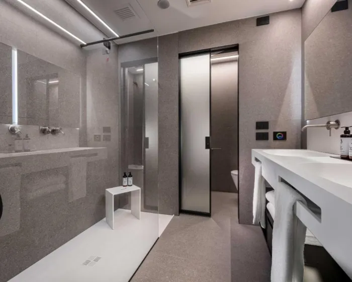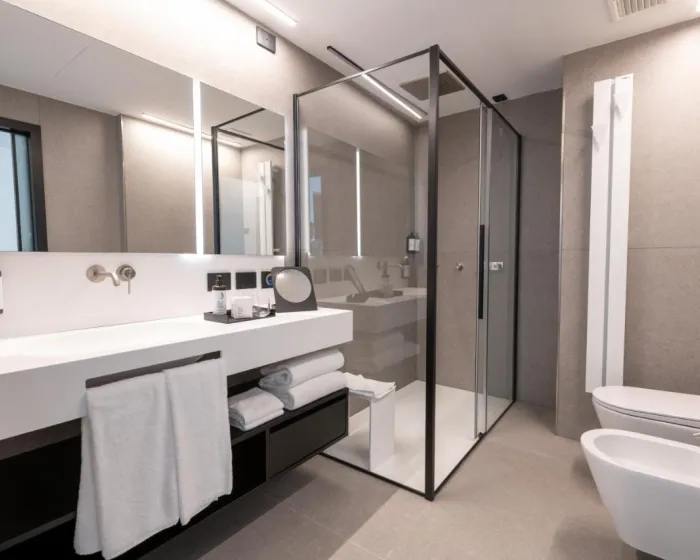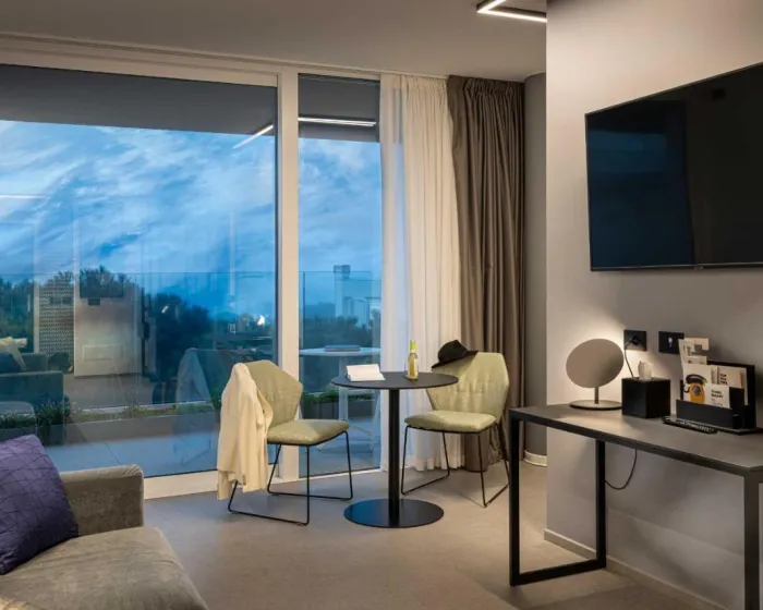 Klima uređaj i centralno grejanje osiguravaju da sobe održavaju udobne temperature. Gosti mogu uživati u pogledu na more sa balkona ili terase. Sobe imaju bračni krevet i kauč na razvlačenje. Dostupne su odvojene spavaće sobe. Kreveti za decu i pomoćni kreveti mogu se zatražiti za mlađe goste. Sef, minibar i radni sto su takođe dostupni. Frižider i čaj/kafa stanica su standardne funkcije. Telefon, televizor sa satelitskim i pay-per-view kanalima, radio i WiFi (bez dodatne naknade) pružaju sve što je potrebno za udoban odmor. Sadržaji koji se pružaju u sobama uključuju papuče i dnevne novine. Kupatila su opremljena tušem. Fen za kosu, ogledalo za šminkanje, bade mantili i telefon su dostupni za svakodnevnu upotrebu. Hotel ima porodične sobe i sobe za nepušače.