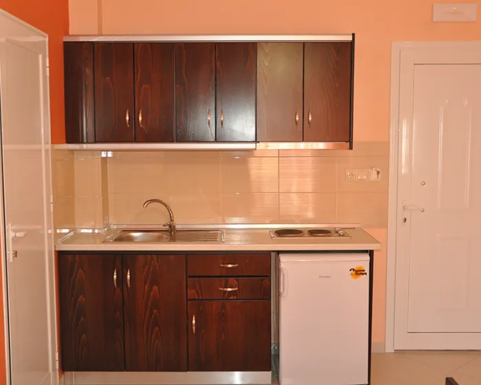 Sve smeštajne jedinice se nalaze na prvom spratu i većina ima bočni pogled na more. Svaka od njih poseduje opremljen kuhinjski deo, kupatilo/wc, terasu, TV, WiFi internet, klima uređaj (uz doplatu na licu mesta od 6€ dnevno).