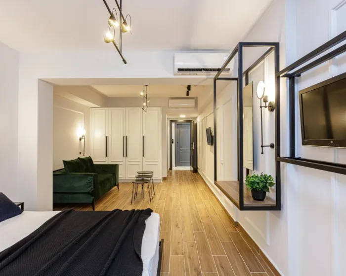 Sobe sadrže kuhinju i kupatilo, sa individualno podešavanjem grejanja za pravilnu temperaturu. Gosti mogu odmarati na balkonu ili terasi. Sve sobe su sa tepihom i uključuju bračni krevet i kauč na razvlačenje. Takođe su dostupni sef, minibar i radni sto. Kuhinja sa čajnom/kafićPMedijom je takođe dostupna. Takođe postoje set za peglanje i presa za pantalone. Direktno biranje telefona, televizor sa satelitskim/ kablovskim kanalima, radio, alarmni sat i WiFi (bez dodatne naknade) osiguravaju optimalnu udobnost. Papuče su uključene. Fen za kosu i bade mantili su dostupni u kupatilima, koja su opremljena tušem i kadom. Kao posebna karakteristika, kupatila su opremljena kozmetičkim proizvodima i izborom peškira. Porodične sobe su dostupne za roditelje sa decom.