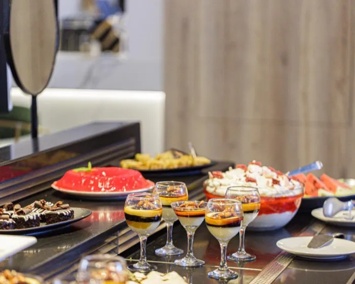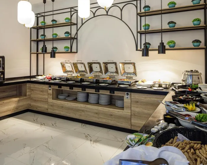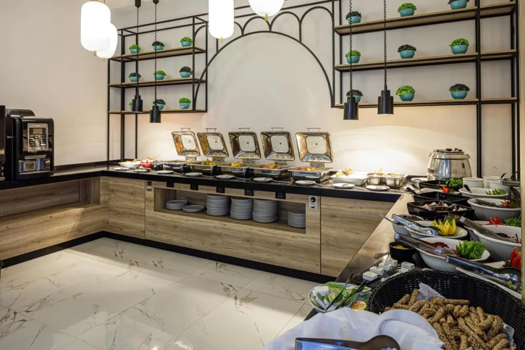 Različite opcije obroka su dostupne, uključujući salu za doručak, kafić i bar. Restoran za nepušače pruža visoke stolice za decu. Opcije ishrane uključuju krevet i doručak i polupansion. Kontinentalni doručak garantuje sjajan početak dana. Ručak se služi a la carte, a večera se može odabrati između švedskog stola i set menija. Dijetetski obroci i dečji obroci mogu se pripremiti na zahtev. Kompleks takođe nudi posebne opcije ishrane. Odmaralište nudi izbor alkoholnih i bezalkoholnih pića.