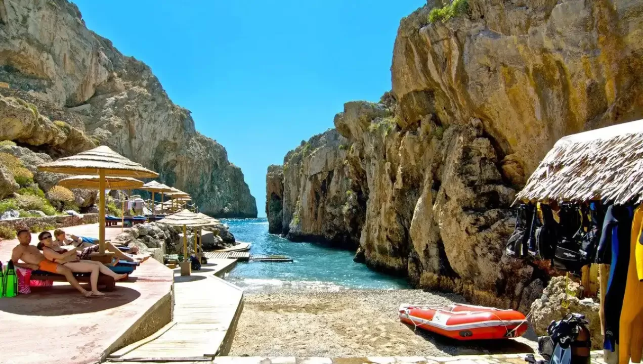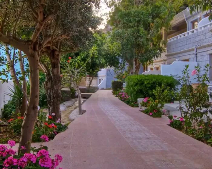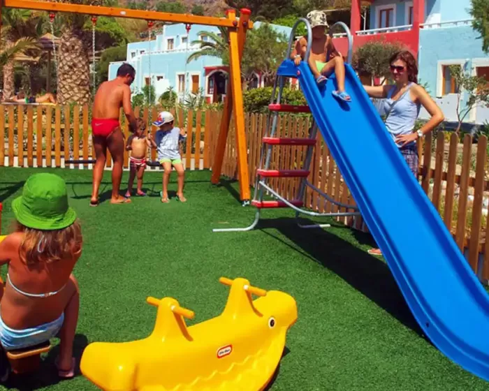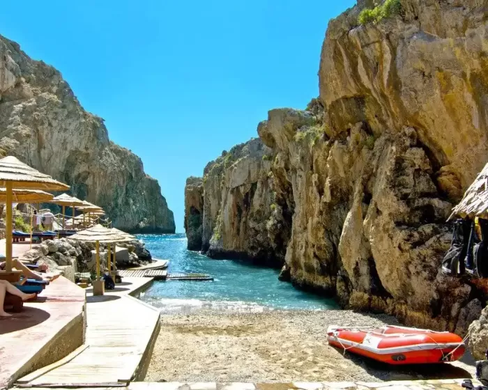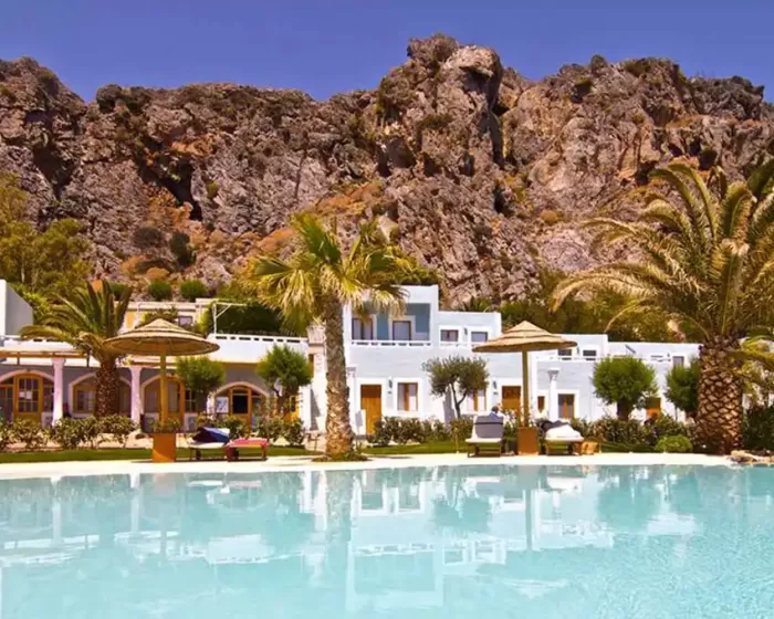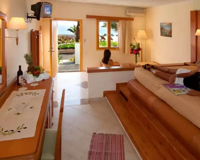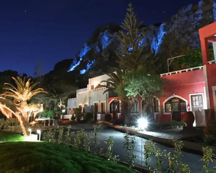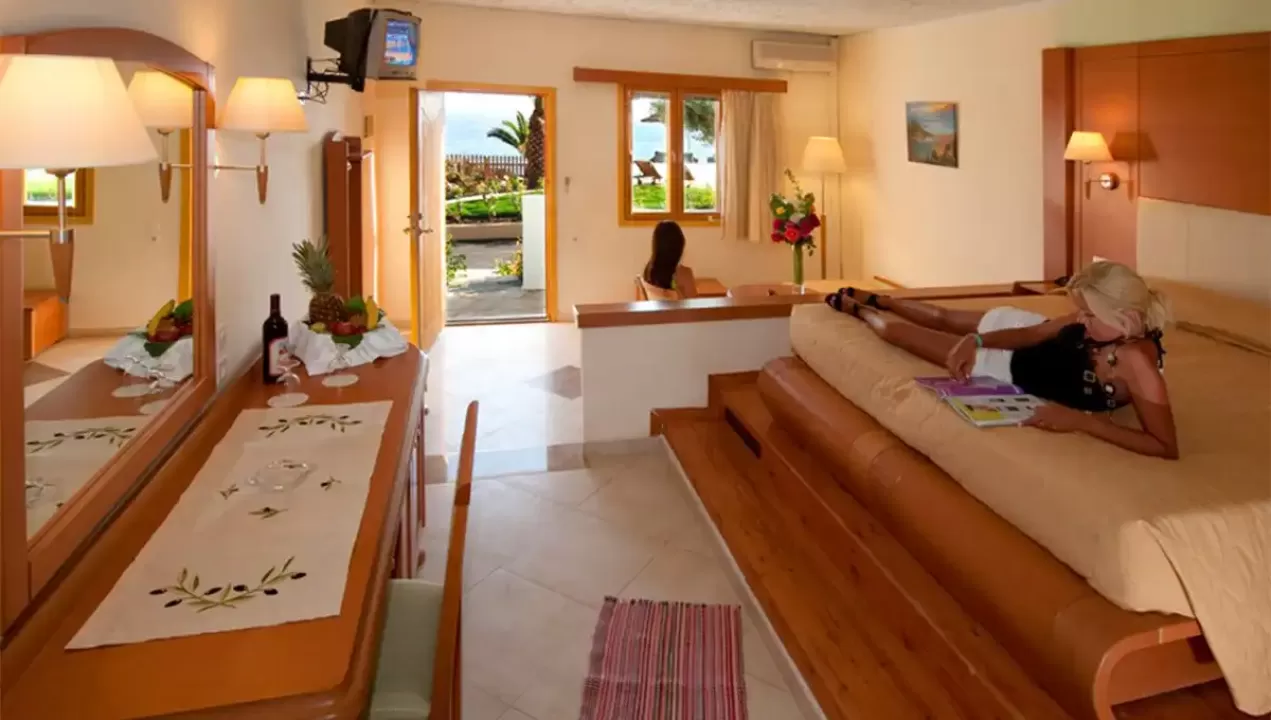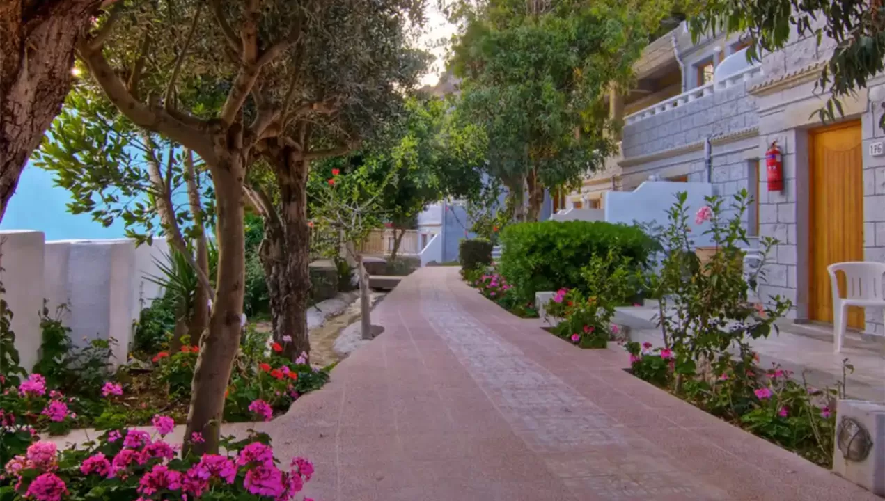Kalypso Cretan Village Plakias Krit je izolovani kompleks na jugu ostrva, smešten na plaži Karavos, na oko 3 kilometra udaljenosti od gradića Plakias i na oko 97 kilometara od aerodroma u Hanji. Na manje od 2 kilometra udaljenosti nalazi se popularna peščana plaža Damnoni. Hotel se nalazi u živopisnom ambijentu, u bujnom rastinju sa dosta zelenila, okružen planinom i stenama, i sa direktnim izlazom na more. Mini bus vozi od hotela do gradića Plakias i do plaže Damnoni (četiri puta dnevno, uz doplatu). Preporuka za miran i relaksirajući odmor.