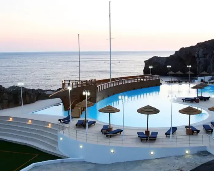 recepcija, wifi internet, loby bar, glavni restoran, restoran a la carte (na steni, sa pogledom na Libijsko more), 3 otvorena bazena sa morskom vodom, ležaljke i suncobrani pored bazena, bar bored bazena, beach bar, ležaljke i suncobrani na plaži, dečiji bazen sa morskom vodom, igralište za decu, zatvoreni bazen sa morskom vodom, spa centar (djakuzi, sauna, masaža, tretmani lica, tursko kupatilo), pećina pirata, ronilački centar i škola ronjenja, sportovi na vodi, rentiranje bicikla, teren za tenis, košarku i odbojku, fitnes sala, stoni tenis, sala za konferencije, prodavnica, parking