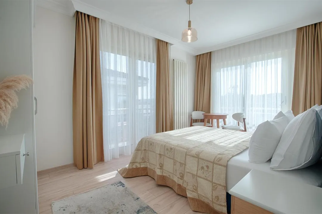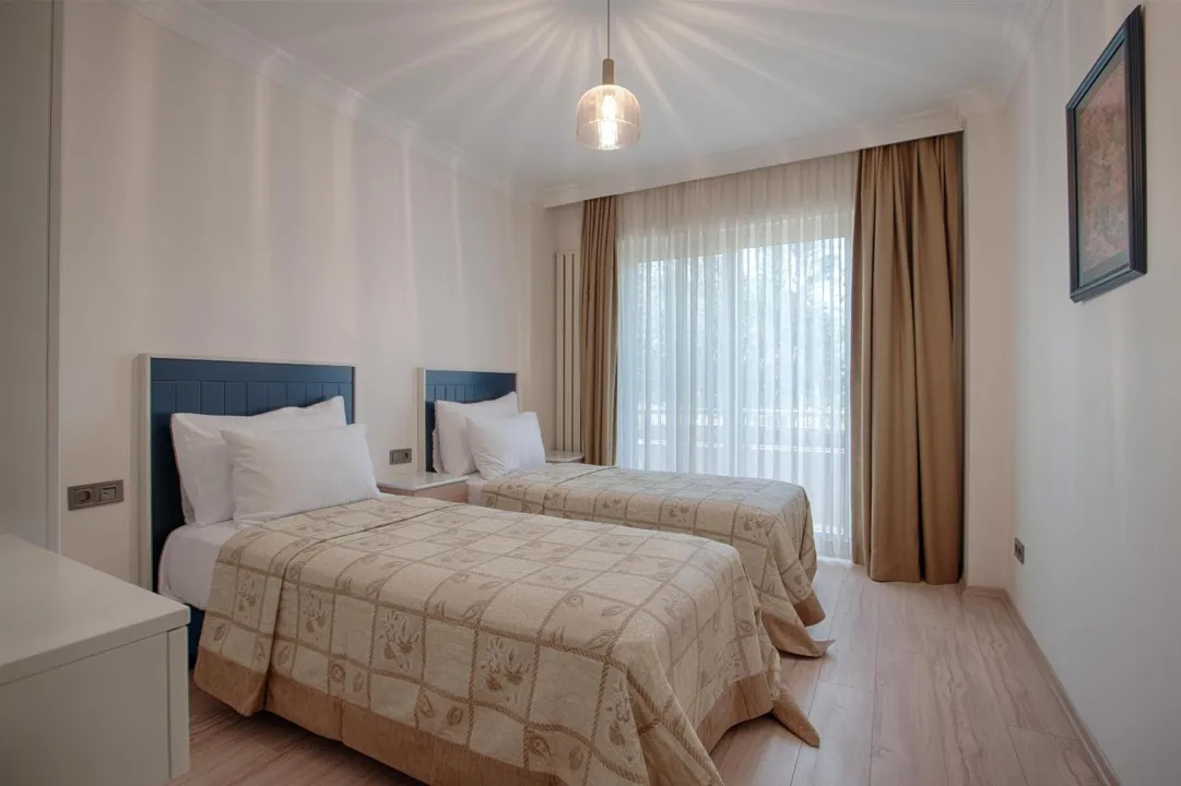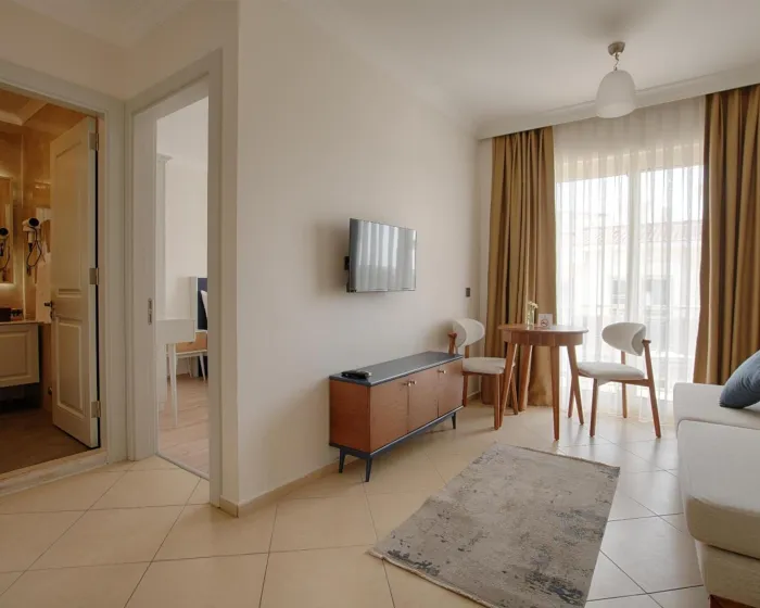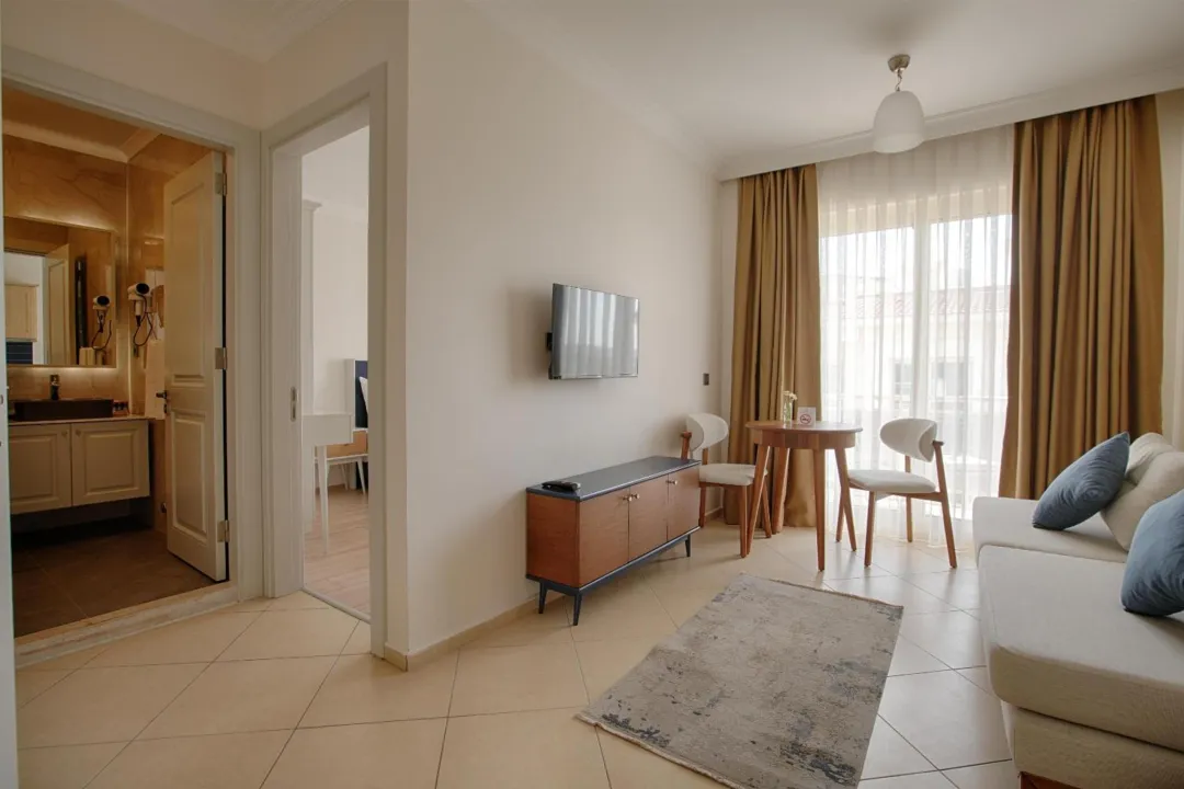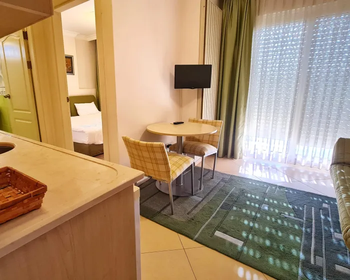 Klima uređaj i centralno grejanje osiguravaju da sobe održavaju udobne temperature. Većina soba uključuje balkon ili terasu kao standardnu karakteristiku. Sve sobe su popločane i uključuju bračni krevet ili kauč na razvlačenje. Dodatni kreveti mogu biti zatraženi. Na raspolaganju su i sef, minibar i radni sto. Kuhinja dolazi sa mini frižiderom i aparatom za kafu/čaj. Direktno biranje telefona, TV i WiFi (bez dodatnih troškova) pružaju sve osnove za udoban odmor. Papuče su uključene. Kupatila su opremljena tušem i kadom, kao i fenom za kosu. Kao dodatna pogodnost, kupatila pružaju kozmetičke proizvode. Porodične sobe su dostupne za roditelje sa decom.