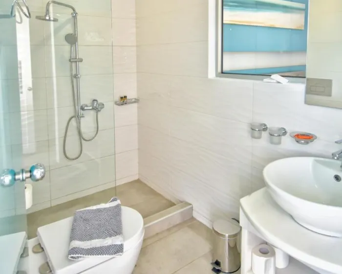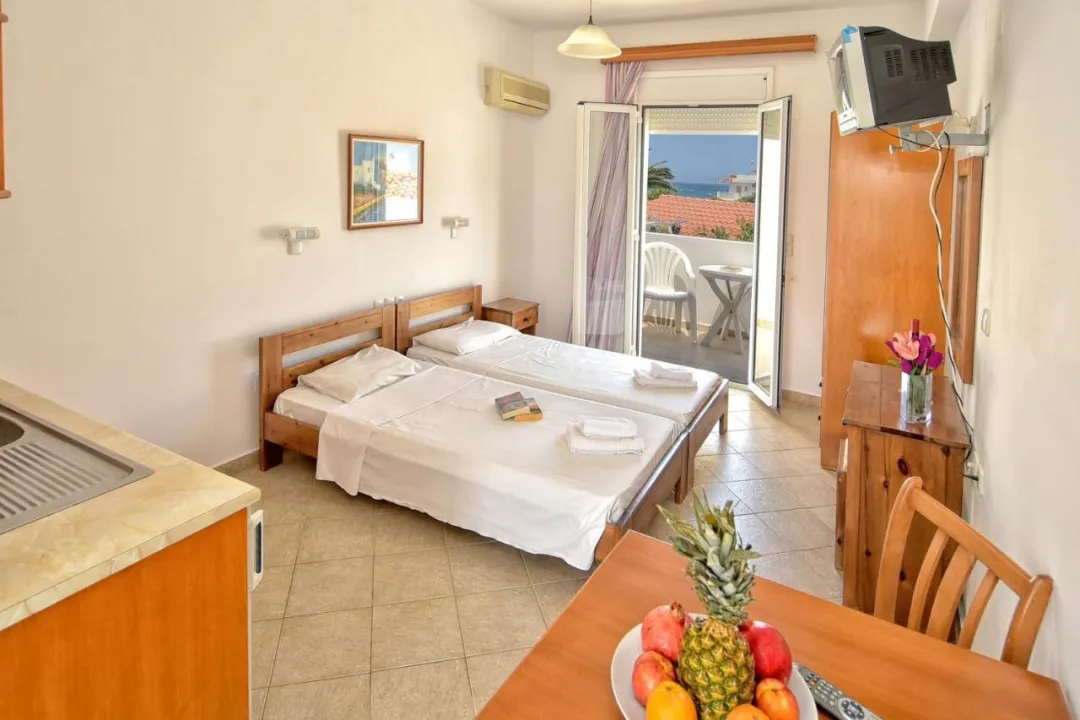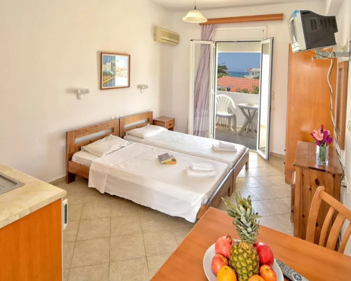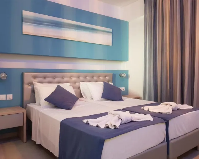 Sobe su opremljene klima uređajem. Gosti imaju pogled na more sa balkona ili terase, koje su standardne pogodnosti nekih soba. Dodatni kreveti mogu biti zatraženi. Na raspolaganju su sef i minibar. Za goste koji sami sebi pripremaju obroke, postoji dobro opremljena čajna kuhinja sa frižiderom, mini frižiderom, šporetom, aparatom za kafu/čaj i rernom. Takođe su obezbeđeni telefon, TV i WiFi (bez dodatne naplate). Kupatila imaju tuš kabinu i kadu. Hotel ima porodične sobe i sobe za nepušače.