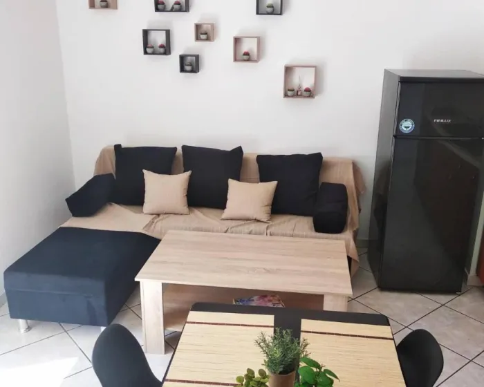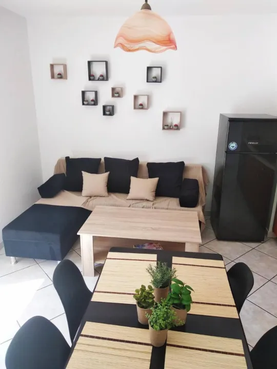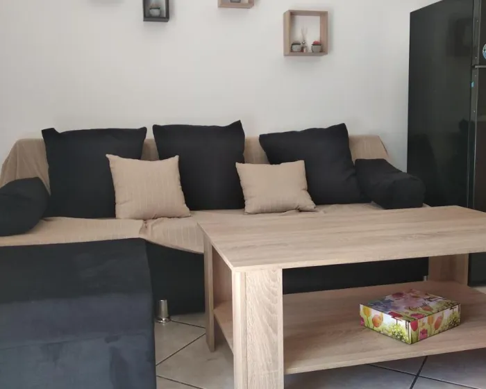 Klimatizovani apartman sastoji se od 1 spavaće sobe, dnevne sobe, potpuno opremljene kuhinje sa rernom i čajnikom, i 1 kupatila sa tušem i fenom za kosu. Peškiri i posteljina obezbeđeni su u apartmanu. Radi dodatne privatnosti, smeštaj ima zaseban ulaz.
