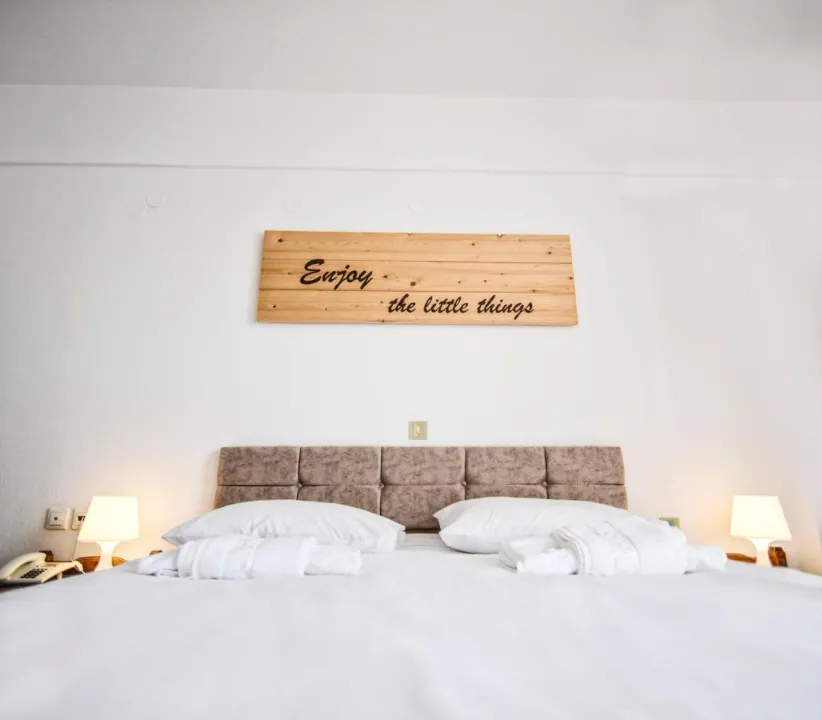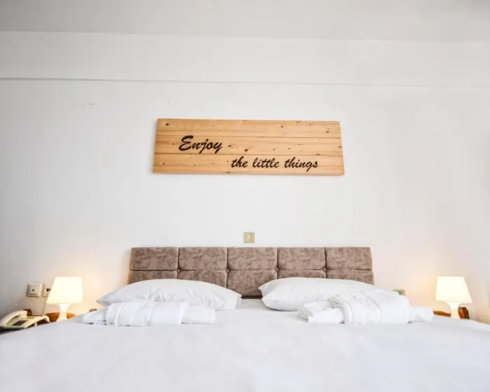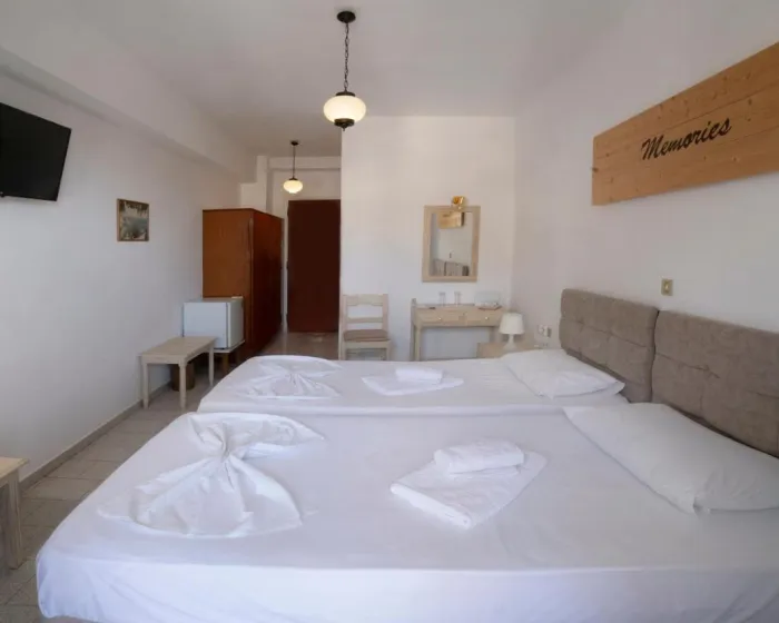 Sobe su opremljene klima uređajem. Sa balkona ili terase pruža se pogled na more. Sobe sadrže queen-size krevet. U sklopu opreme nalaze se frižider i besplatan WiFi. Kupatila su opremljena tušem i fenom za kosu. Hotel raspolaže sobama za nepušače.