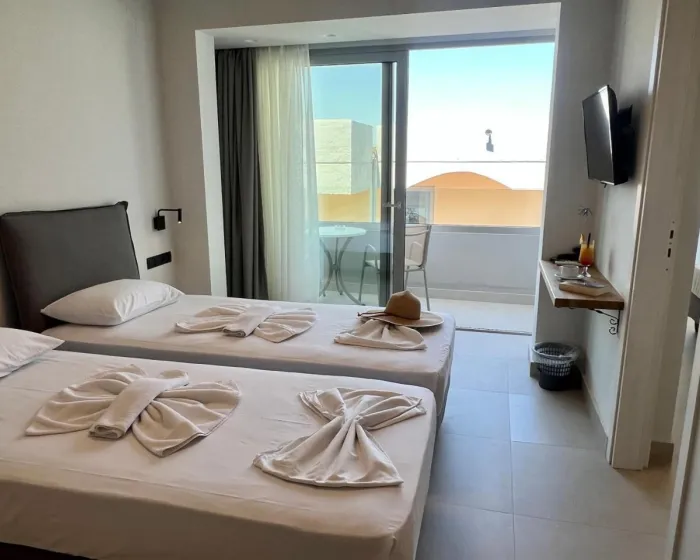 Sobe su klimatizovane i imaju centralno grejanje. Neke sobe imaju balkon ili terasu sa pogledom na more. U sobama se nalazi francuski ležaj, a dostupne su i sobe sa odvojenim spavaćim sobama. Na raspolaganju su sef i radni sto. Dodatne pogodnosti uključuju frižider i aparat za čaj i kafu. U sobama se nalaze i pegla, presa za pantalone, telefon, satelitska televizija, radio, budilnik i besplatan WiFi. Kupatila su opremljena fenom za kosu, tušem i kadom, a dodatno sadrže kozmetičke proizvode i set peškira. Hotel raspolaže porodičnim i sobama za nepušače.