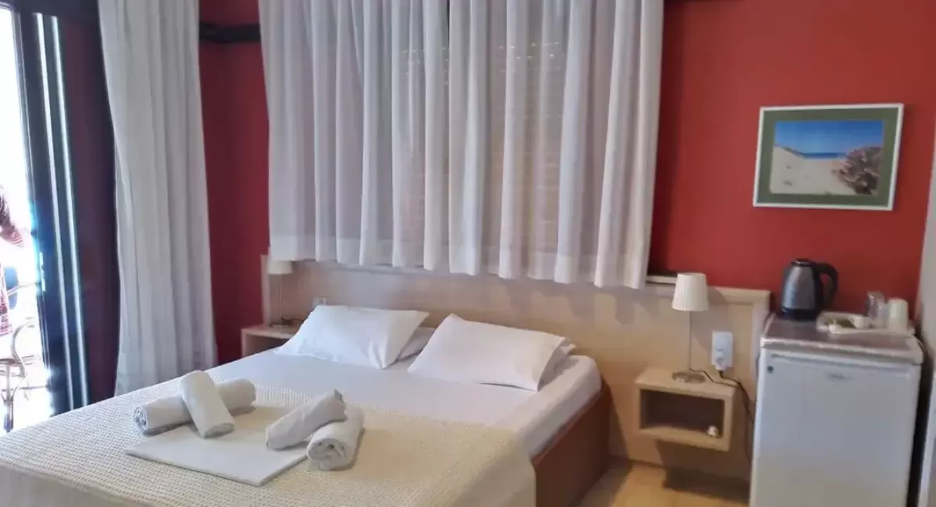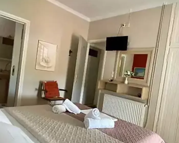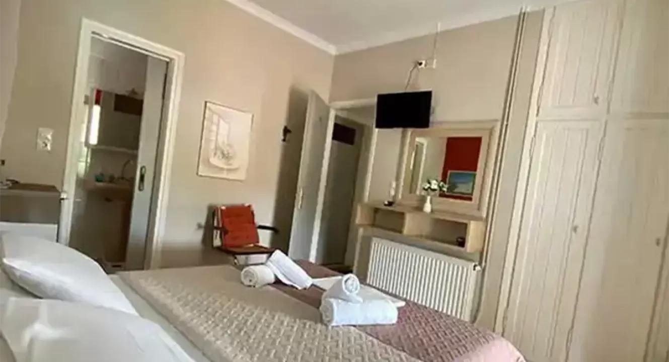 Sobe su opremljene francuskim krevetom na prvom spratu i sa dva odvojena kreveta u prizemlju (maksimalno dve odrasle osobe),SAT TV, frižiderom, besplatnim Wi-Fi internetom, kupatilom sa tuš kabinom, klima uređajem (uz doplatu), i terasom sa pogledom na ostrvo Skorpios i Maduri. Kompletno opremljena kuhinja je zajednička na spratu.