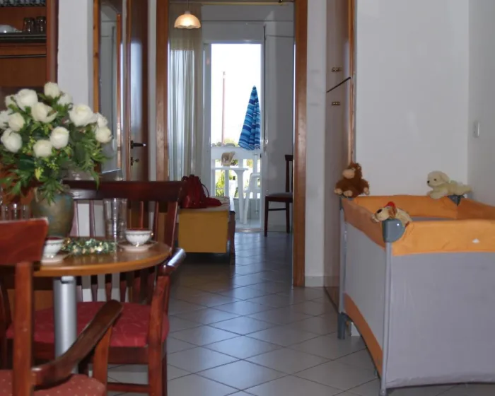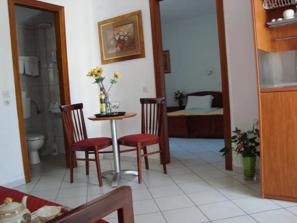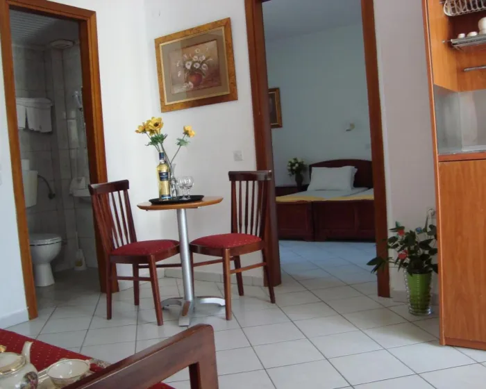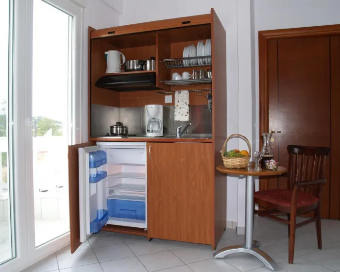 Klima uređaj i centralno grejanje obezbeđuju da sobe održavaju udobnu temperaturu. Gosti mogu uživati u pogledu na more sa balkona ili terase. U sobama se nalazi bračni krevet. Dragocenosti se mogu sigurno čuvati u sefu. Kuhinja sa frižiderom, mikrotalasnom pećnicom i aparatom za kafu/čaj takođe je standardno obezbeđena. Pegla je obezbeđena radi gostove udobnosti. Telefon, TV i WiFi (bez dodatne naplate) takođe su obezbeđeni. Sušilo za kosu i telefon dostupni su u kupatilima, koja su opremljena tuš kabinom. Kozmetički proizvodi i izbor peškira pružaju dodatnu udobnost u kupatilima. Porodične sobe dostupne su za roditelje sa decom.