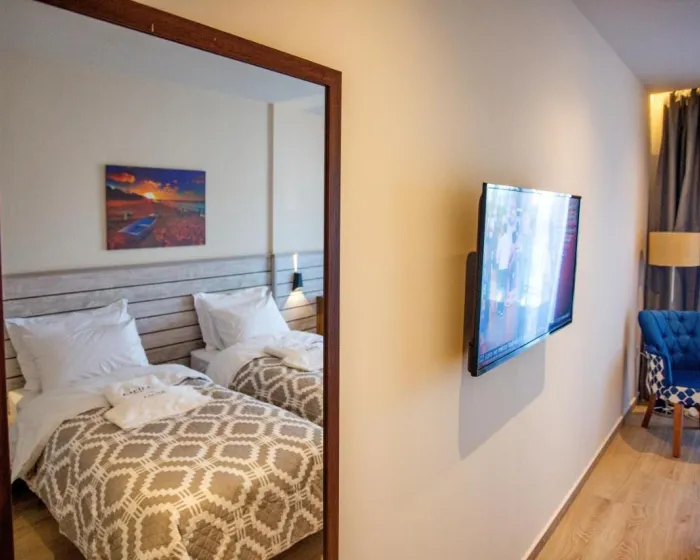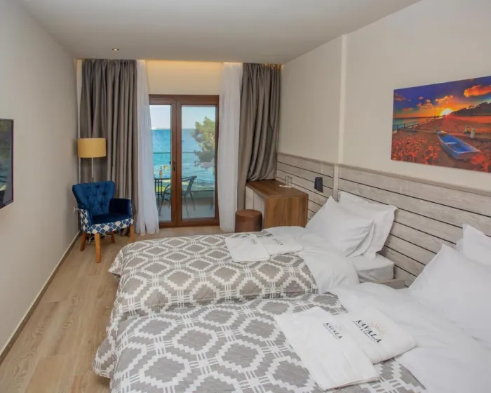 Hotel će gostima obezbediti klimatizovane sobe sa radnim stolom, čajnikom, minibarom, sefom, TV-om i privatnim kupatilom sa tušem. U Kavala Resort & Spa svaka soba dolazi sa posteljinom i peškirima.