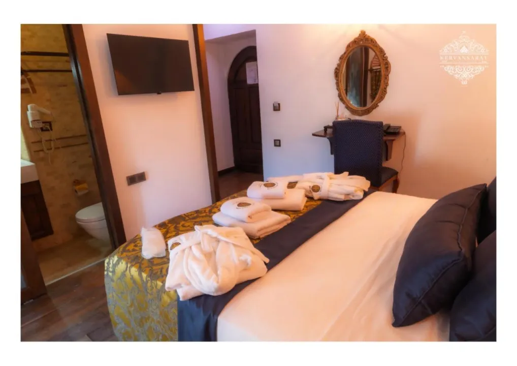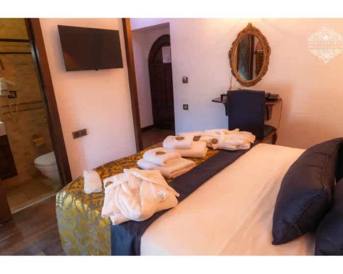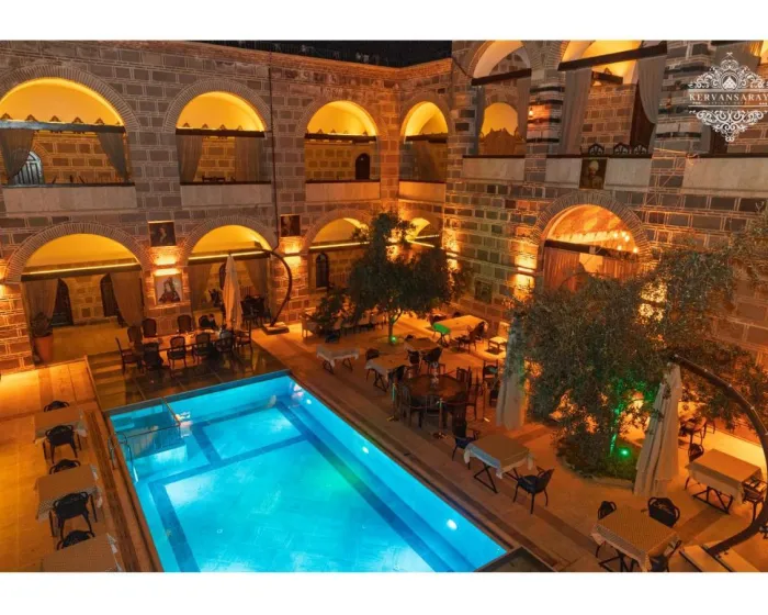 Smesten u Cesmeu, na manje od 1 km od Tekk Plaja, Kervansaray Antique Hotel nudi smestaj sa barom i privatnim parkingom. 4-zvezdicni hotel ima restoran, klimatizovane sobe sa besplatnim WiFi-jem, svaka sa privatnim kupatilom. U smestaju se nude usluge posluzivanja u sobi, recepcija otvorena 24 sata i menjacnica za goste.