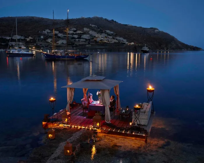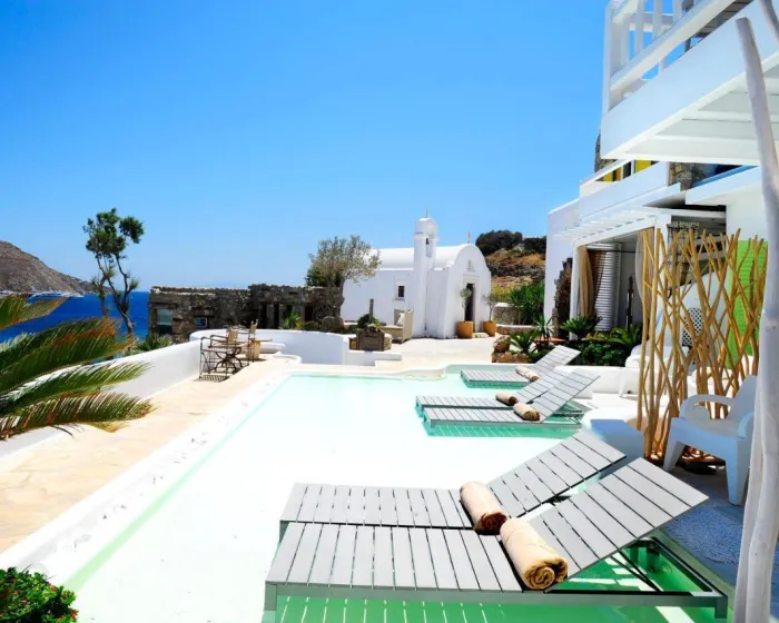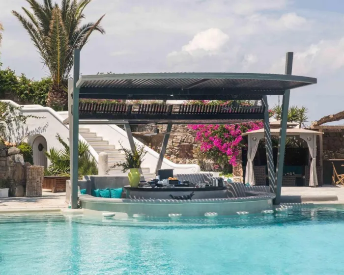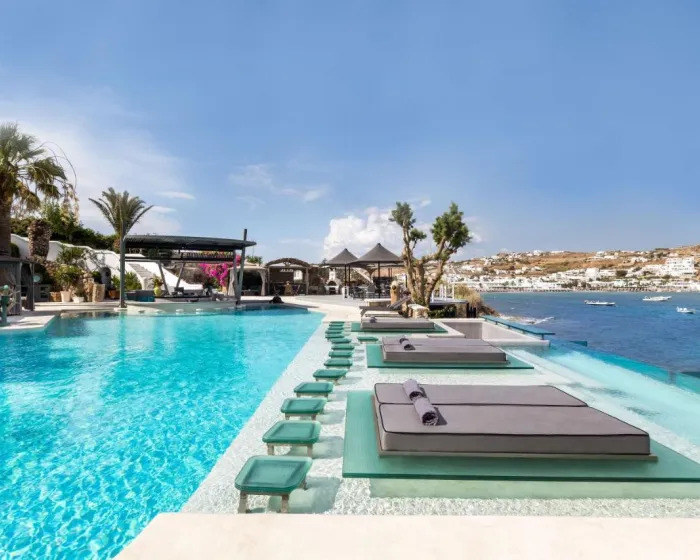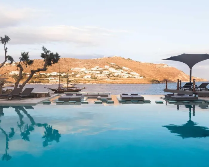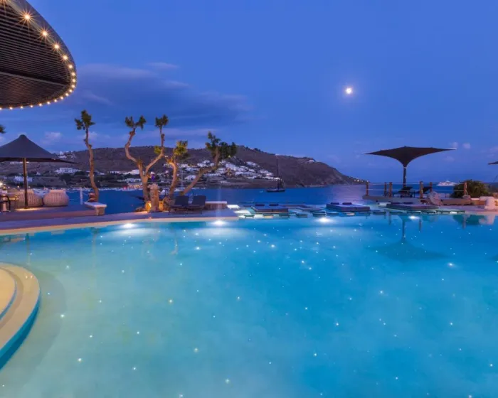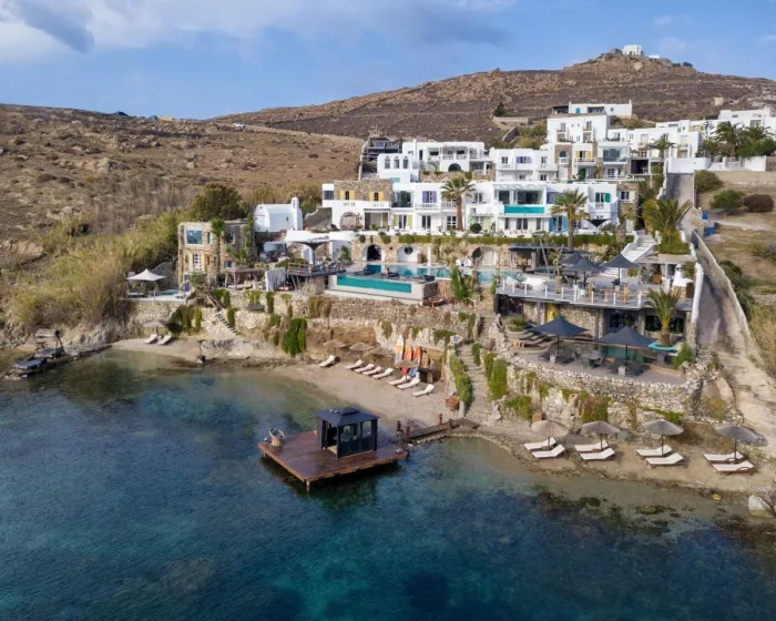 Ovaj hotel se nalazi u prelepom zalivu Ornos, na samo oko 10 minuta od centra Mikonosa, luke i aerodroma.