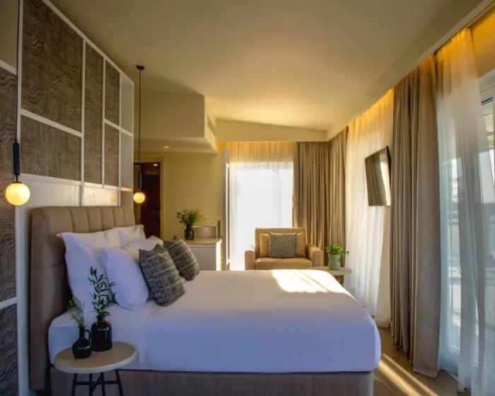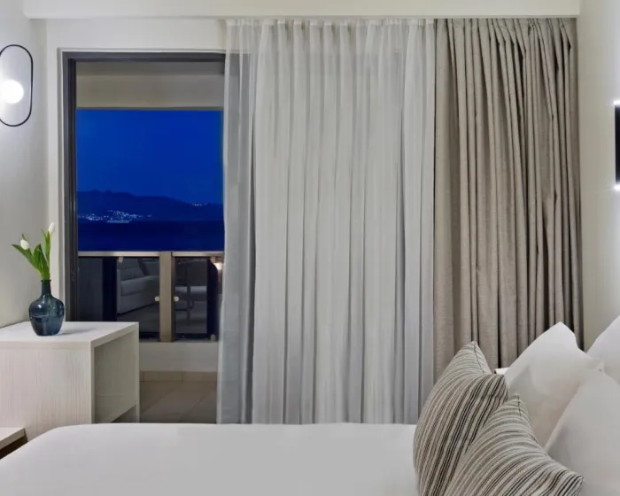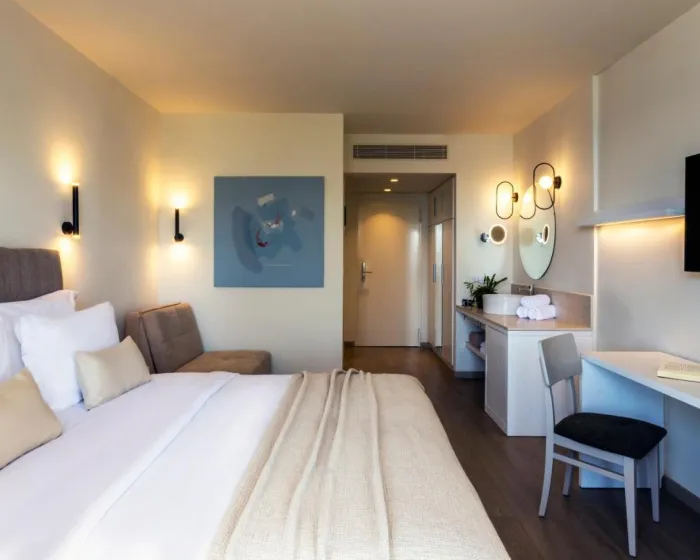 Sobe imaju dnevni boravak i kupatilo. Klima uređaj (bez dodatne naknade) osigurava udobne temperature. Gosti ih čeka poklon dobrodošlice. Gosti mogu opustiti i uživati u pogledu na more sa balkona ili privatne terase nekih soba. Sobe imaju bračni krevet ili sofu. Dodatni kreveti ili dečiji krevetić mogu biti obezbeđeni na zahtev. Takođe su dostupni sef i radni sto. Dodatne pogodnosti uključuju frižider, mini bar i čaj/kafa stanica. Sredstvo za peglanje je dostupno radi praktičnosti gostiju. Takođe se nude direktno biranje telefona, televizor sa ravnim ekranom i satelitskim kanalima, radio, adapter za utičnicu i WiFi (bez dodatne naknade). Papuče su uključene. Kupatila su opremljena tušem i kadom. Fen za kosu, ogledalo za šminkanje, bade mantili i telefon su dostupni za svakodnevnu upotrebu. Za dodatnu udobnost u kupatilima, gostima se nude kozmetički proizvodi. Gosti takođe mogu rezervisati 3 sobe prilagođene za goste sa invaliditetom sa prilagođenim kupatilima za invalidska kolica. Hotel ima porodične sobe i sobe za nepušače.