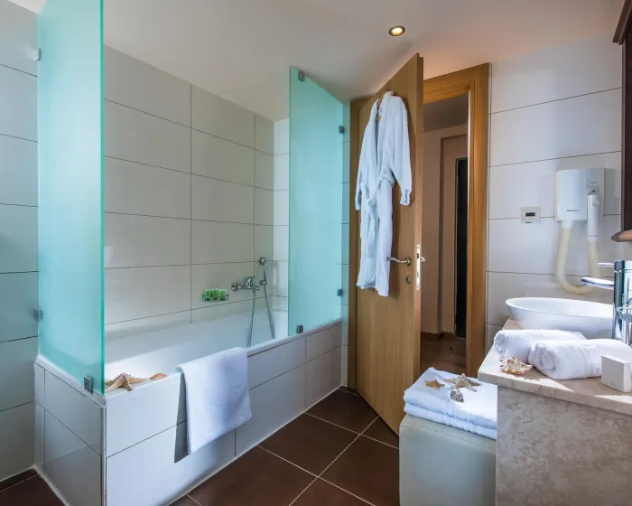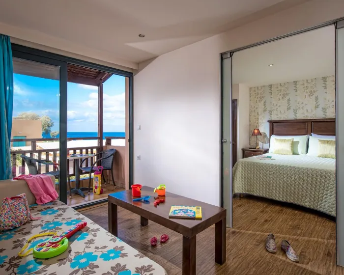 Klima uređaj i centralno grejanje obezbeđuju udobnu temperaturu u sobama. U većini jedinica, gosti mogu uživati u pogledu na more sa balkona ili terase. Sobe imaju bračni krevet i sofu na razvlačenje. Dostupne su odvojene spavaće sobe. Kreveti za decu i dodatni kreveti mogu se zatražiti za mlađe goste. Sef omogućava sigurno čuvanje lične imovine gostiju. Za praktičnost gostiju, jedinice uključuju frižider i aparati za kafu/čaj. Pegla je obezbeđena za praktičnost gostiju. Ostale karakteristike uključuju telefon, TV i WiFi (bez dodatne naplate). Fen za kosu i ogledalo za šminkanje dostupni su u kupatilima, koja su opremljena tušem i kadom. Hotel ima porodične sobe i sobe za nepušače.