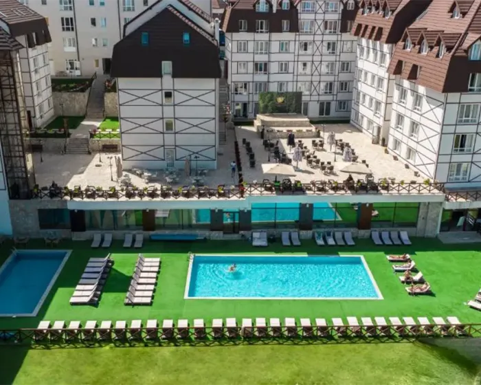 recepcija, sefovi, bankomat, menjačnica, loby bar, biznis centar, kamin bar, restoran, 2 otvorena bazena, zatvoreni bazen, dečiji bazen, tobogani, spa i wellnes centar (doplata), ski oprema, shuttle bus, wifi internet, lift, usluge čuvanja dece, terasa za sunčanje, besplatan barking (bez rezervacije)