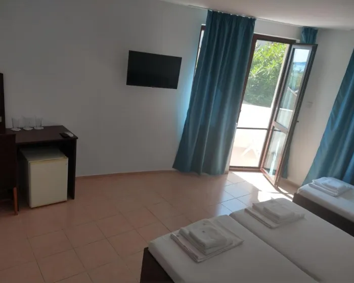 Plaža Černomorec je udaljena 1,4 km od Къща за гости Валena grad. Najbliži aerodrom je Aerodrom Burgas, udaljen 18 km od smeštaja.