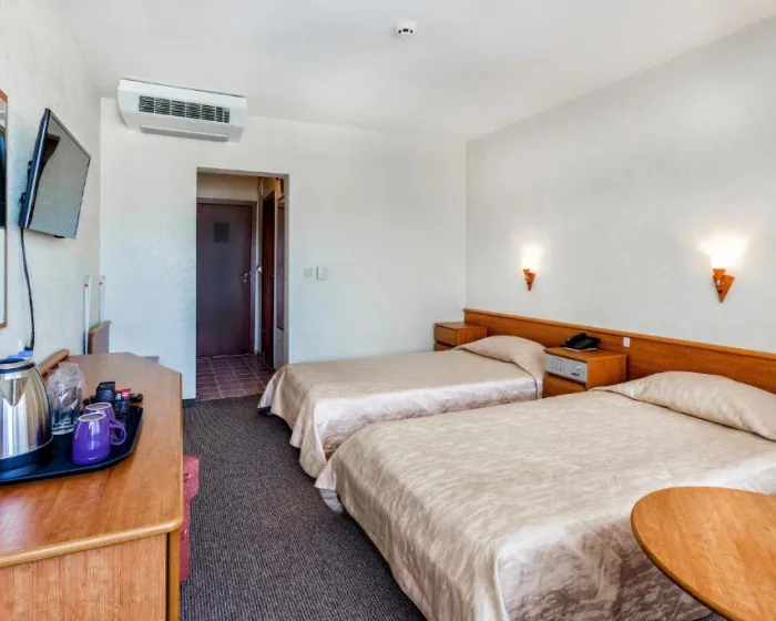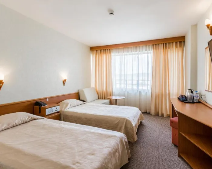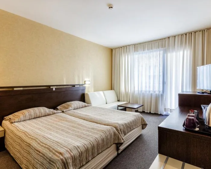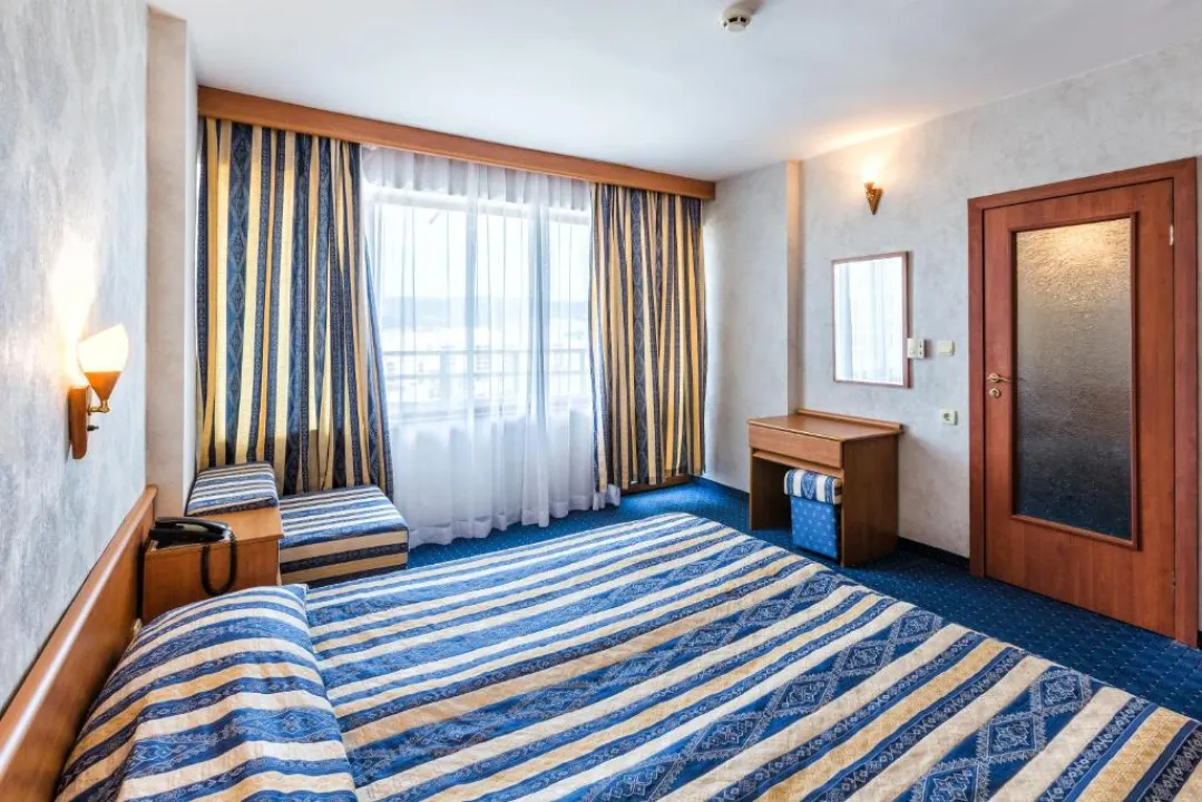 Sve sobe imaju klima uređaj. Određene jedinice nude pogled na more sa balkona ili terase. Sobe su prekrivene tepihom i opremljene bračnim ili king size krevetima. Pomoćni i dečiji kreveti dostupni su na zahtev. Sef i radni sto su obezbeđeni, kao i mini frižider i aparat za kafu/čaj. Direktna telefonska linija, TV sa satelitskim programima i WiFi (bez doplate) čine boravak prijatnijim. Kupatila imaju tuš i kadu, kao i fen, ogledalo i kozmetičke proizvode. Dostupne su i sobe prilagođene osobama sa invaliditetom. U objektu postoje porodične sobe, sobe za nepušače i sobe za pušače.