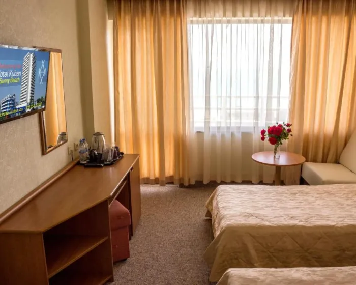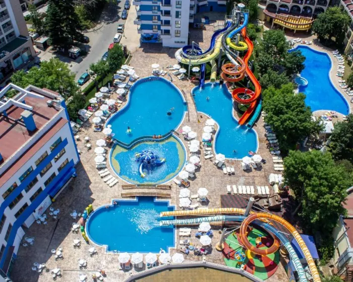 Kuban Resort & Aquapark hotelsko odmaralište na plaži uživa savršenu lokaciju na glavnoj ulici u centru Sunčevog Brega, na oko 150 m od peščane plaže. Nalazi se u zoni šetališta, u blizini prodavnica, restorana, barova i noćnog života. Stari grad Nesebar je udaljen oko 5 minuta vožnje. Aerodrom Burgas je udaljen oko 25 km, a aerodrom Varna oko 150 km.