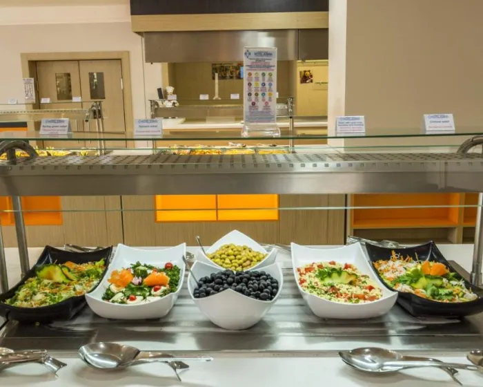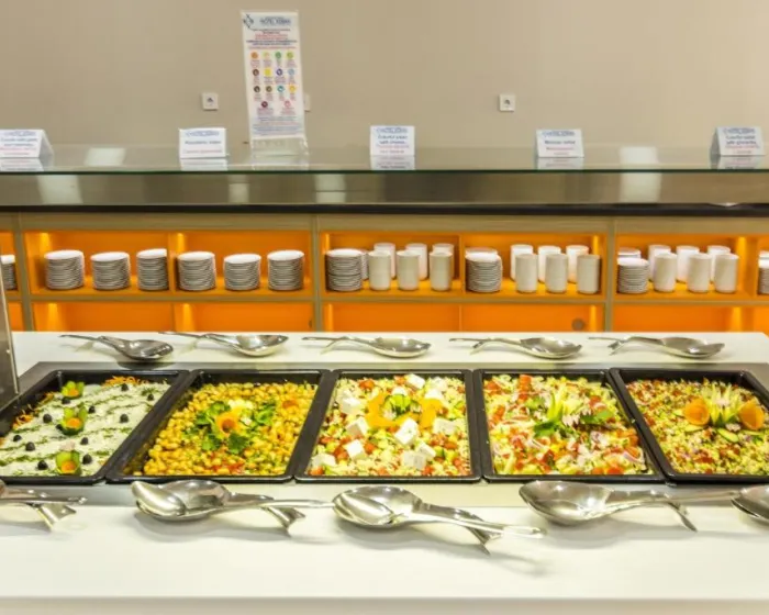 U objektu se nalaze trpezarija, sala za doručak, kafić i bar. Restoran za nepušače ima visoke stolice za decu. Moguće je rezervisati noćenje, noćenje sa doručkom, polupansion, pun pansion ili sveuključenu uslugu. Gosti sa sveuključenim aranžmanima uživaju i dodatne zakuske. Doručak se služi na velikom bifeu, ručak je „a la carte“, a večera je bife. Po zahtevu se pripremaju obroci za decu. Kuvanje pred gostima pruža dodatno zadovoljstvo.