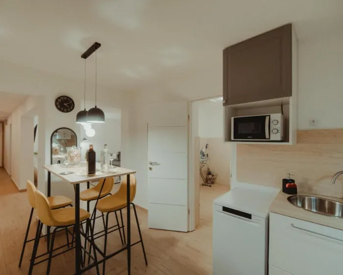 Prostrani apartman ima 1 spavaću sobu, flat-screen TV sa streaming uslugama, potpuno opremljenu kuhinju sa mašinom za pranje sudova i mikrotalasnom rernom, veš mašinu i 1 kupatilo sa tuš kabinom. Peškiri i posteljina obezbeđeni su u apartmanu. Radi dodatne privatnosti, smeštaj ima poseban ulaz.