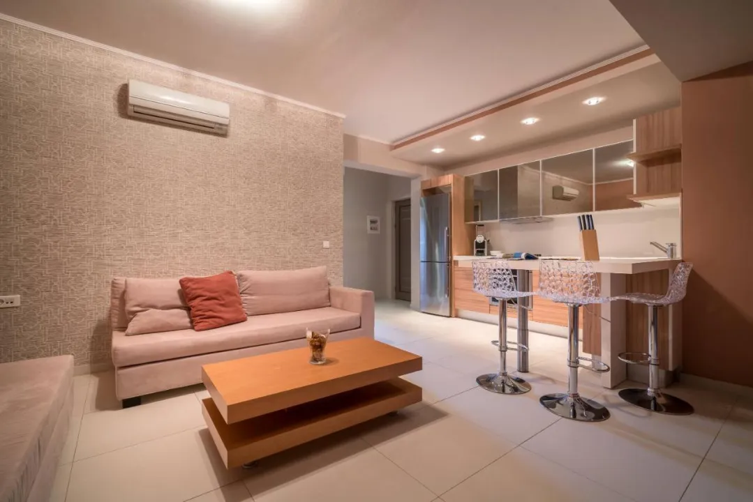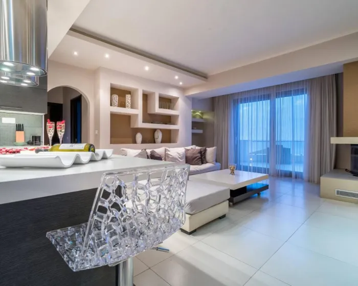 Klima uređaj i centralno grejanje osiguravaju da sobe održavaju ugodnu temperaturu. Gosti mogu uživati u pogledu na more sa balkona ili terase. Sobe imaju bračni krevet i sofu. Dodatni ležajevi mogu biti zatraženi. Opremljena kuhinja sa frižiderom, aparatom za kafu/čaj i rernom je takođe obezbeđena kao standard. Tu je i veš mašina i set za peglanje. TV, CD plejer, DVD plejer i WiFi (bez dodatne naplate) pružaju sve neophodno za udoban odmor. Kupatila su opremljena tušem i fenom za kosu. Kupatila prilagođena za osobe sa invaliditetom takođe mogu biti rezervisana. Hotel ima porodične sobe i sobe za nepušače.