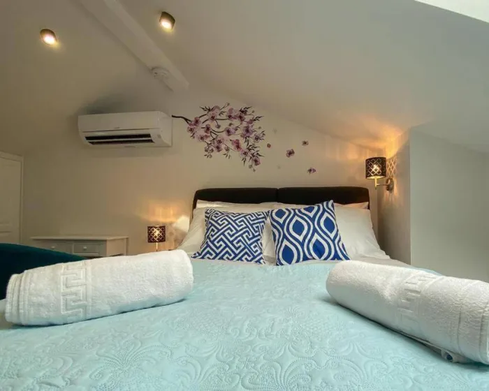Vila ima 1 spavaću sobu, 1 kupatilo, posteljinu, peškire, flat-screen TV sa servisima za strimovanje, trpezariju, potpuno opremljenu kuhinju i terasu sa pogledom na grad. Privatan ulaz vodi goste u vilu, gde mogu uživati u vinu ili šampanjcu i čokoladi ili kolačima. Vila je za nepušače i zvučno izolovana.
