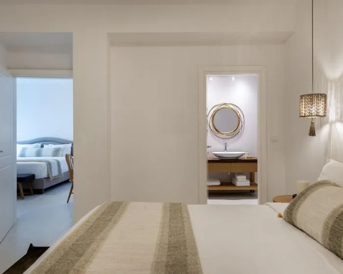 Klima uređaj i centralno grejanje osiguravaju da sobe održavaju udobnu temperaturu. Gosti mogu uživati u pogledu na more sa balkona ili terase. Sobe imaju krevet queen size i sofu na razvlačenje. Dragocenosti se mogu sigurno čuvati u sefu. Frižider i aparati za čaj/kafu su standardne karakteristike. TV i WiFi pružaju sve neophodno za udoban odmor. Papuče su uključene. Fen za kosu i bade mantili su na raspolaganju u kupatilima za svakodnevnu upotrebu. Kao posebna karakteristika, kupatila su takođe opremljena kozmetičkim proizvodima i izborom peškira. Hotel ima porodične sobe i sobe za nepušače.