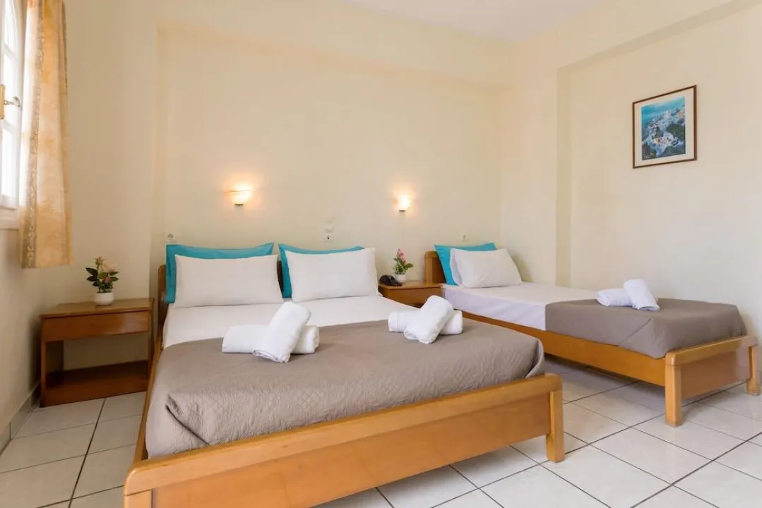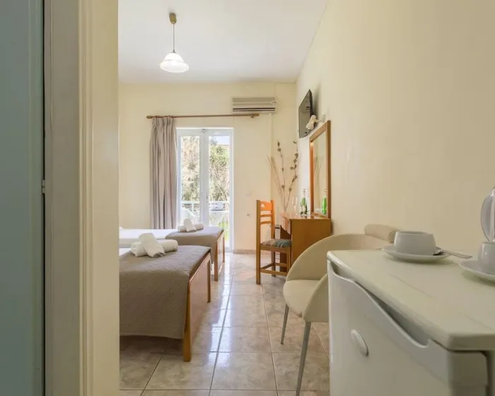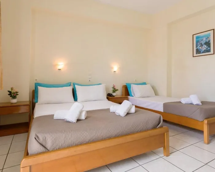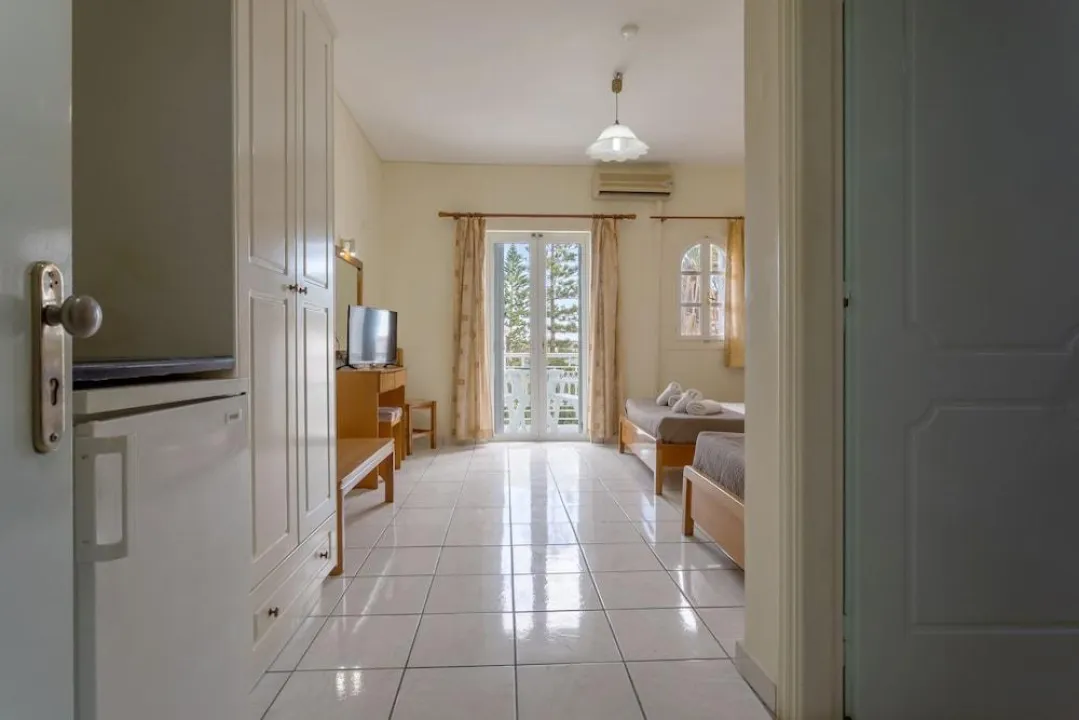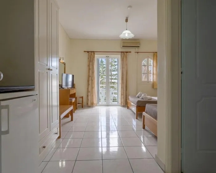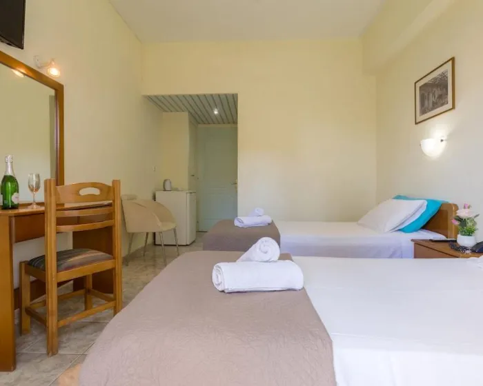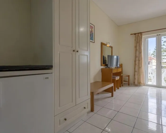 Sa jednim krevetom ili odvojenim krevetima, dodatnim krevetom, krevetom za bebe (besplatno), pločicama, čajnom kuhinjom, deljenim bazenom, terasom ili balkonom, čajnikom (besplatno), internetom (besplatno), sefom (uz doplatu) i satelitskom televizijom sa lokalnim kanalima, kao i individualno podesivom klimom (dodatna naknada). Kupatilo sa tušem (veličina sobe: 22 - 25 m²). Peškiri se menjaju 3 puta nedeljno.