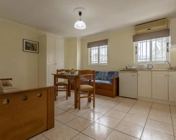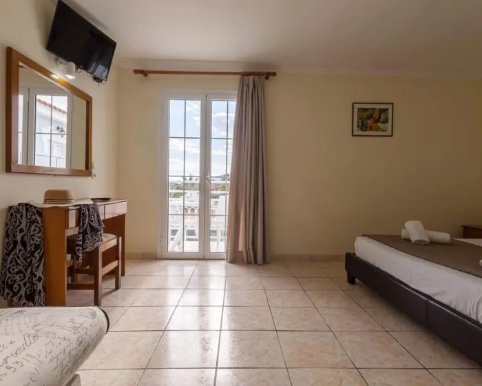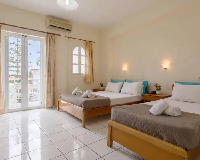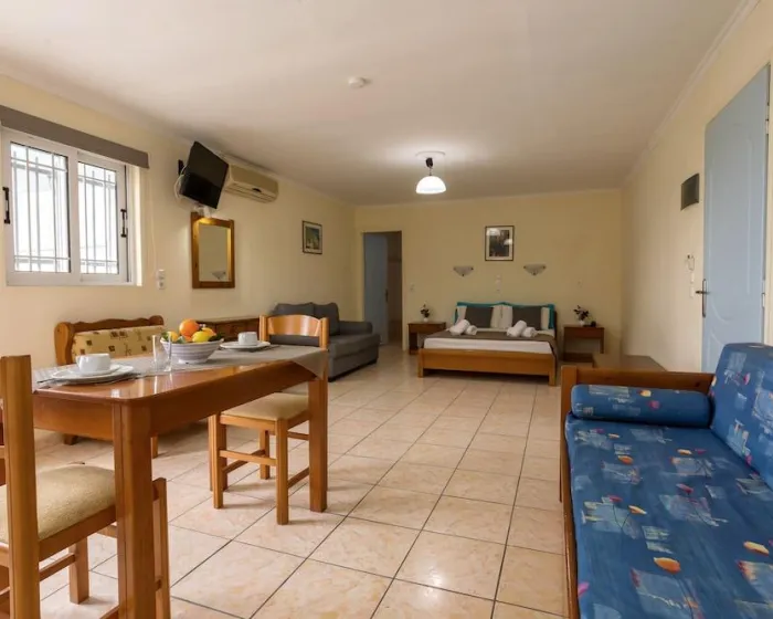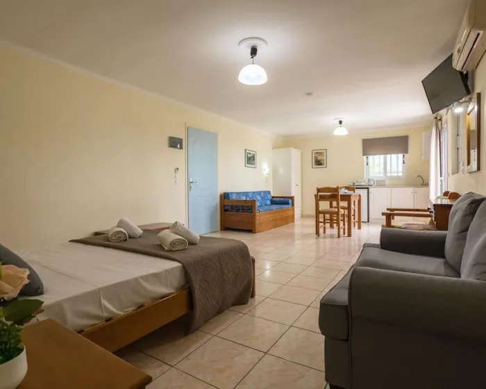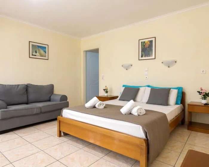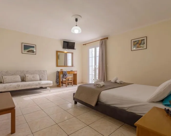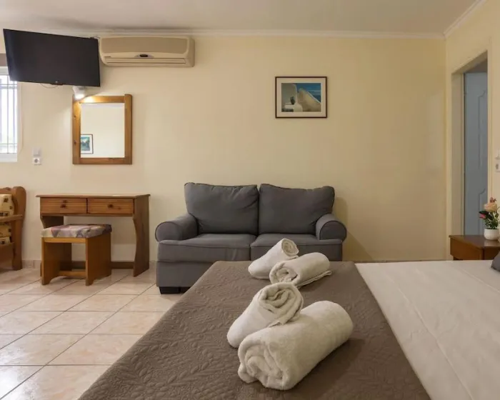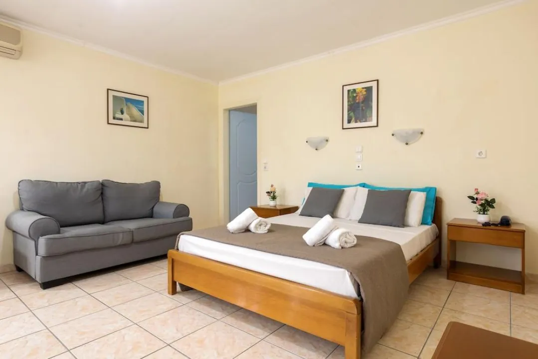 Sa jednim krevetom ili odvojenim krevetima, dodatnim krevetom, krevetom za bebe (besplatno), pločicama, čajnom kuhinjom, deljenim bazenom, terasom ili balkonom, čajnikom (besplatno), internetom (besplatno), sefom (uz doplatu) i satelitskom televizijom sa lokalnim kanalima, kao i individualno podesivom klimom (dodatna naknada). Kupatilo sa tušem (veličina sobe: 22 - 25 m²). Peškiri se menjaju 3 puta nedeljno.