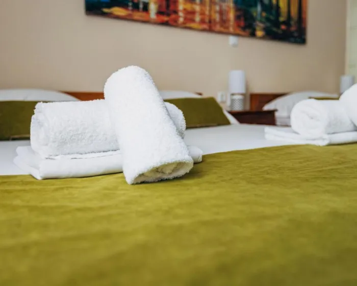 Sobe su opremljene klima uređajem i centralnim klima uređajem. Gosti mogu uživati u pogledu na vrt sa balkona ili terase. Sve sobe imaju tepih i queen size krevet ili kauč na razvlačenje, a pomoćni ležajevi su dostupni na zahtev. Na raspolaganju su radni sto i frižider. Gostima su obezbeđeni i pegla sa daskom. Oprema uključuje televizor sa satelitskim ili kablovskim kanalima, radio i besplatan WiFi. Kupatila imaju tuš, fen za kosu, kao i kozmetiku i peškire. Objekat raspolaže porodičnim i nepušačkim sobama.