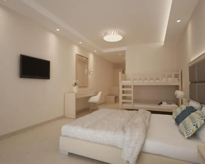 Klima uređaj i centralno grejanje osiguravaju udobne temperature u sobama. U većini jedinica, gosti mogu uživati u pogledu na more sa balkona ili terase. Sobe imaju bračni krevet i kauč na razvlačenje. Dostupne su odvojene spavaće sobe. Krevetići za decu i dodatni kreveti mogu se zatražiti za mlađe goste. Mini bar i, uz nadoknadu, sef su takođe dostupni. Dodatne pogodnosti uključuju frižider, mini frižider i aparat za čaj/kafu. Telefon, televizor sa ravnim ekranom sa satelitskim kanalima i WiFi (bez dodatne naplate) pružaju sve essentials za udoban odmor. Kupatila su opremljena tušem i kadom, kao i fenom za kosu. Za dodatnu udobnost u kupatilima, gostima se nude kozmetički proizvodi. Resorts ima porodične sobe i sobe za nepušače.