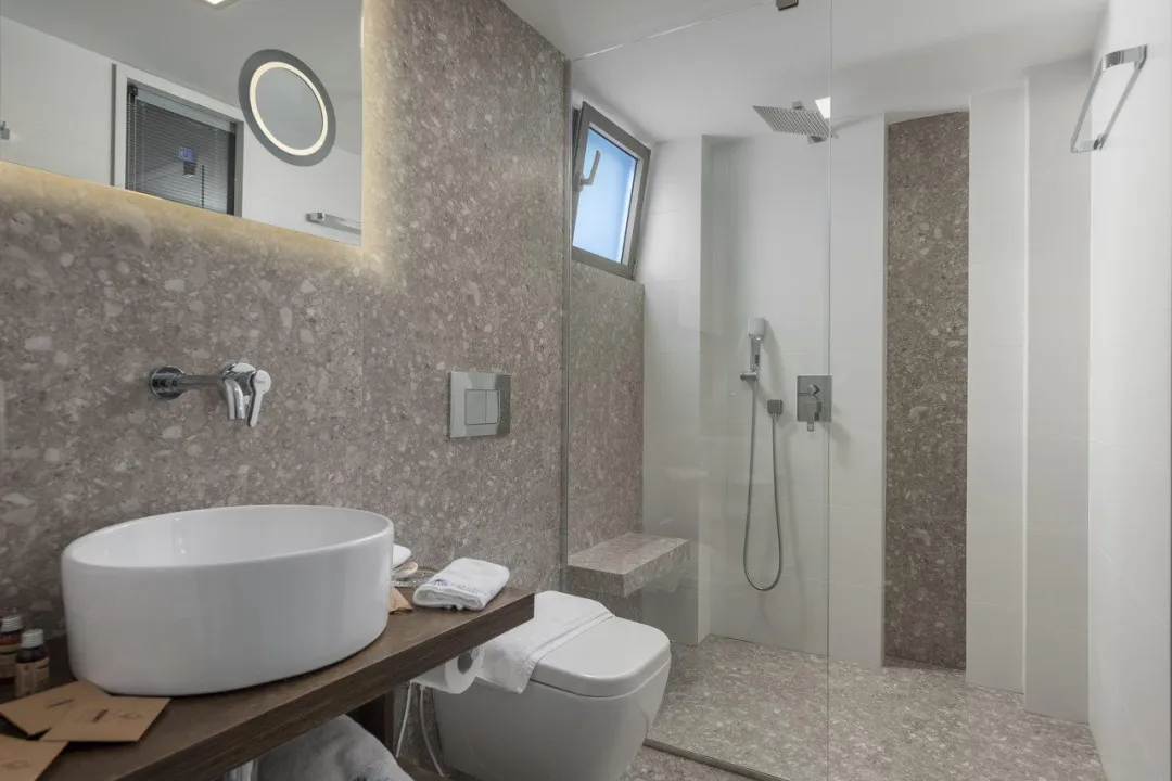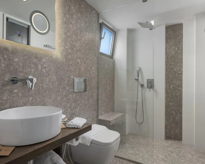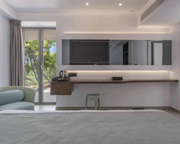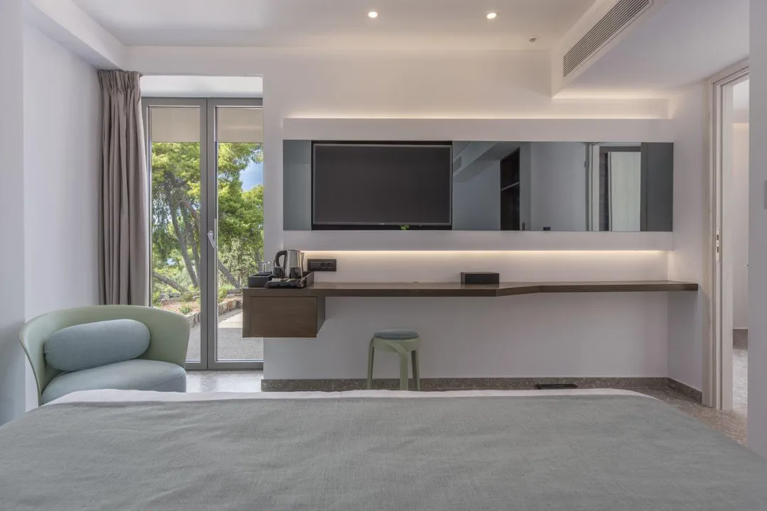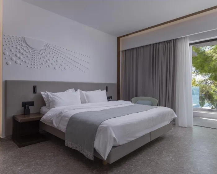 Sobe su opremljene klima uređajem i centralnim grejanjem. Gosti mogu da se opuste i uživaju u pogledu na more sa balkona ili privatne terase nekih soba. Sobe imaju bračni krevet i sofu na rasklapanje. Dodatni kreveti se mogu zatražiti. Takođe su dostupni sef i mini bar. Gosti će takođe naći i postaju za čaj/kafu među standardnim sadržajima. Tu su i telefon, satelitska televizija i WiFi. Papuče su uključene. Kupatila su opremljena tušem. Fen za kosu, bade mantili i telefon su dostupni za svakodnevnu upotrebu. Takođe su dostupne sobe prilagođene osobama sa invaliditetom sa kupatilima pristupačnim osobama u invalidskim kolicima. U resortu postoje sobe za nepušače.