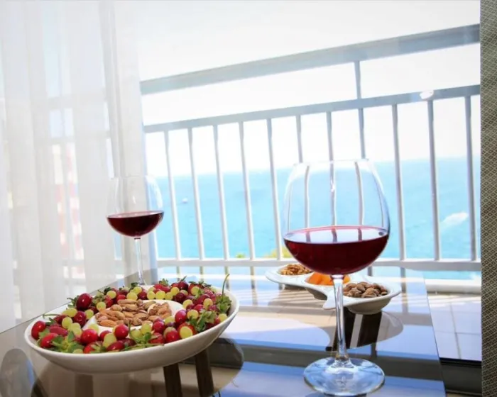 Klima uređaj i individualno podešavanje grejanja obezbeđuju da sobe održavaju udobne temperature. Gosti mogu uživati u pogledu na more sa terase. Sobe imaju bračni krevet ili krevet king size. Takođe su dostupni i sef i minibar. Gosti će takođe pronaći postaju za čaj/kafu među standardnim funkcijama. Dodatni sadržaji uključuju set za peglanje i peglu za pantalone. Direktno biranje telefona, televizor sa satelitskim/kablovskim kanalima, alarmni sat i WiFi (bez dodatne naknade) pružaju sve neophodno za udoban odmor. Papuče su uključene. Fen za kosu i telefon su obezbeđeni u kupatilima, koja uključuju tuš kabinu i kadu. Kao posebna karakteristika, kupatila su takođe opremljena kozmetičkim proizvodima i izborom peškira. Pristupačne sobe za osobe sa invaliditetom mogu se rezervisati.