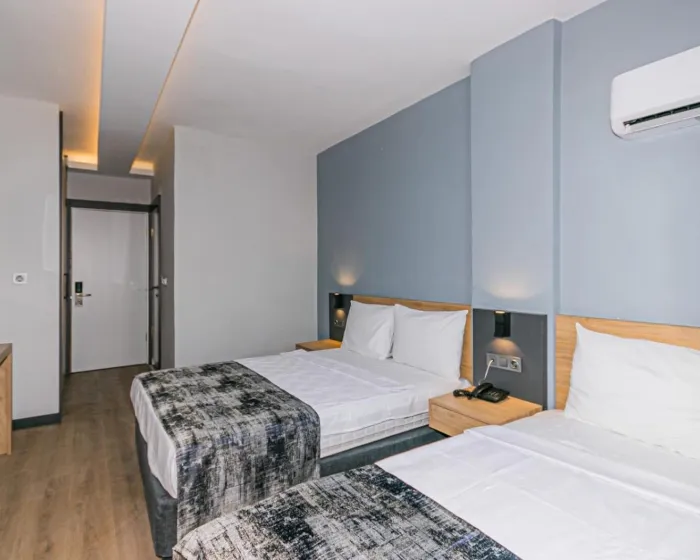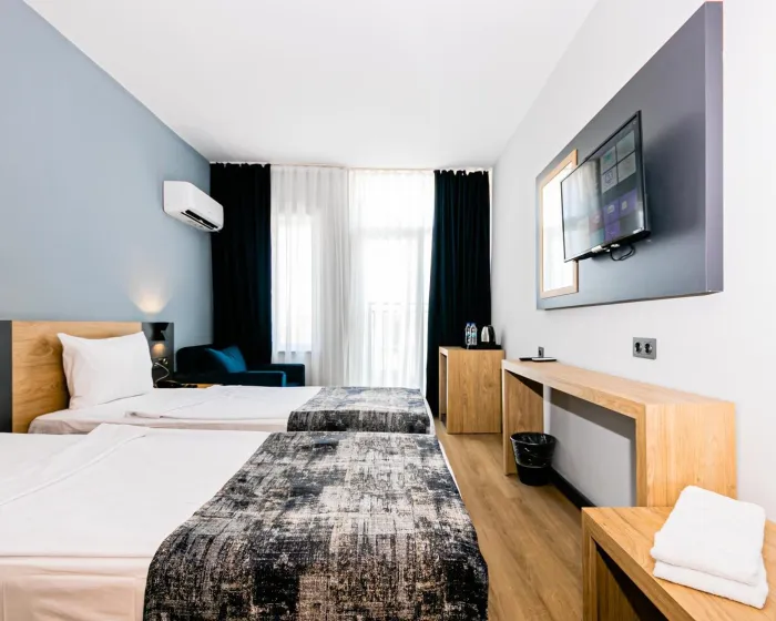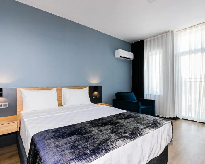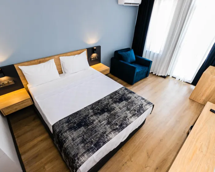 Klima uređaj i individualno podešavanje grejanja obezbeđuju da sobe održe prijatne temperature. Većina jedinica uključuje balkon sa pogledom na more, gde gosti mogu opuštati se i zadržavati. Sve sobe su pvcane i imaju bračni krevet ili kauč na razvlačenje. Dodatni kreveti mogu se zatražiti. Mini bar je obezbeđen. Gosti će takođe pronaći stanicu za čaj/kafu među standardnim funkcijama. Direktno biranje telefona, televizor sa satelitskim/kablovskim kanalima i WiFi (bez dodatne naplate) pružaju sve osnovne potrebe za udoban odmor. Gosti će takođe pronaći papuče u svojim sobama. Kupatila uključuju fen za kosu i opremljena su tušem i kadom. Dostupne su sobe prilagođene invalidima. Hotel ima porodične sobe i 63 sobe za nepušače.