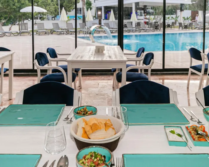 Različite opcije za jelo su dostupne, uključujući restoran sa klimom, sala za doručak, kafić i bar. Opcije ishrane uključuju noćenje sa doručkom, polupansion, puni pansion i sve uključeno. Obilan doručak na bazi švedskog stola, ručak i večera nude obilje ukusne raznolikosti. Osoblje je takođe srećno da obezbedi dečje obroke.