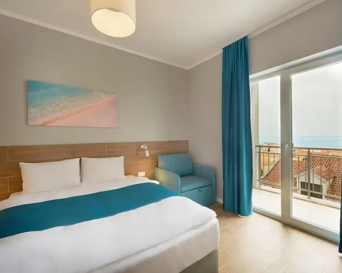 Nalazeći se u Bečićima, na 700 metara od plaže Bečići i na 6,6 kilometara od Svetog Stefana, Apartmani Bečići Akacija pružaju pogled na