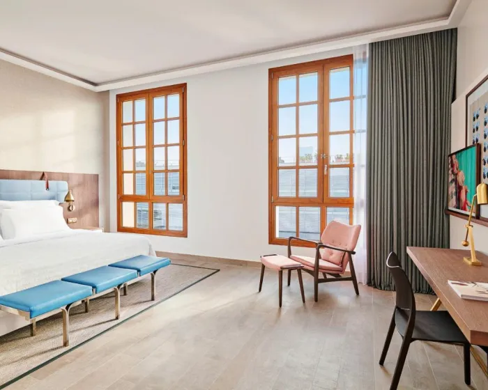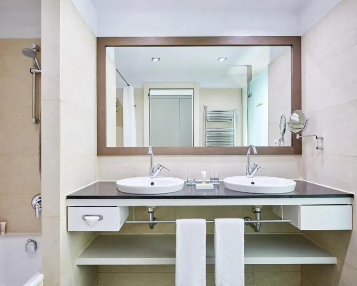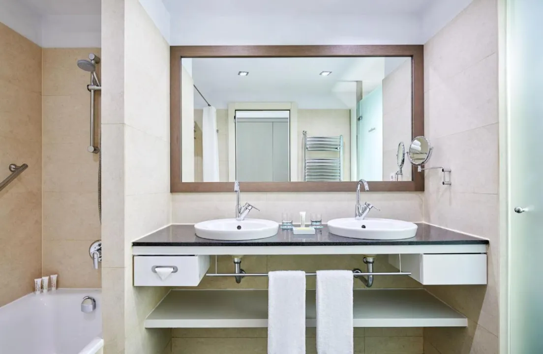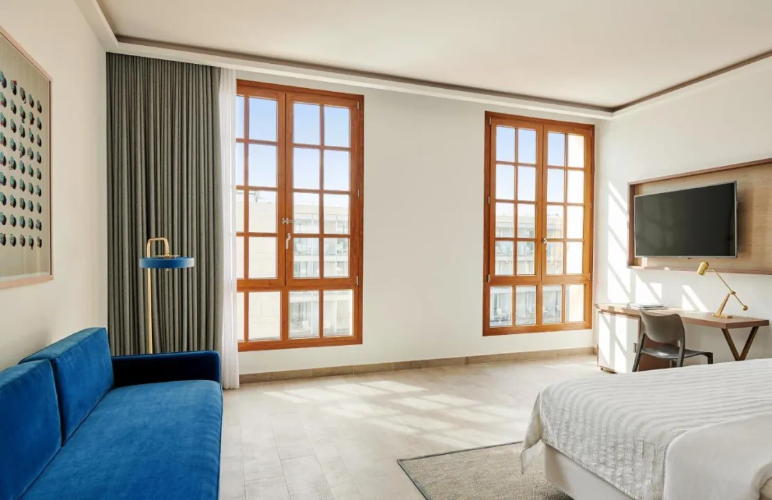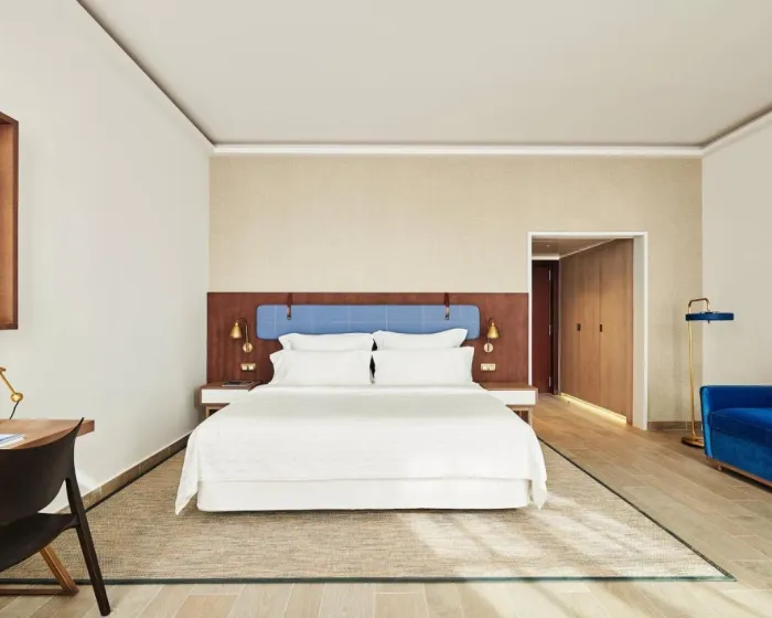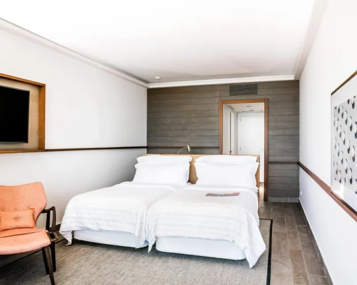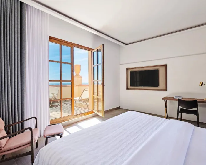 Sobe su opremljene klima uređajem i centralnim grejanjem. U većini soba gosti mogu uživati u pogledu na more sa balkona ili terase. Sobe imaju bračni krevet ili krevet king size. Dodatni kreveti mogu biti zatraženi. Sef, mini bar i radni sto su takođe dostupni. Daska za peglanje je obezbeđena za praktičnost gostiju. Direktna telefonska linija, televizor sa satelitskim/kablovskim kanalima, radio, stereo uređaj i WiFi (bez dodatne naknade) su takođe obezbeđeni. Gosti mogu koristiti uslugu noćnog obrtanja kreveta. Papuče su uključene. Kupatila su opremljena tušem, kadom i bideom. Fen, bade mantili i telefon su dostupni za svakodnevnu upotrebu. Sobe prilagođene osobama u kolicima sa pristupačnim kupatilima takođe su dostupne. Hotel ima porodične sobe i sobe za nepušače.