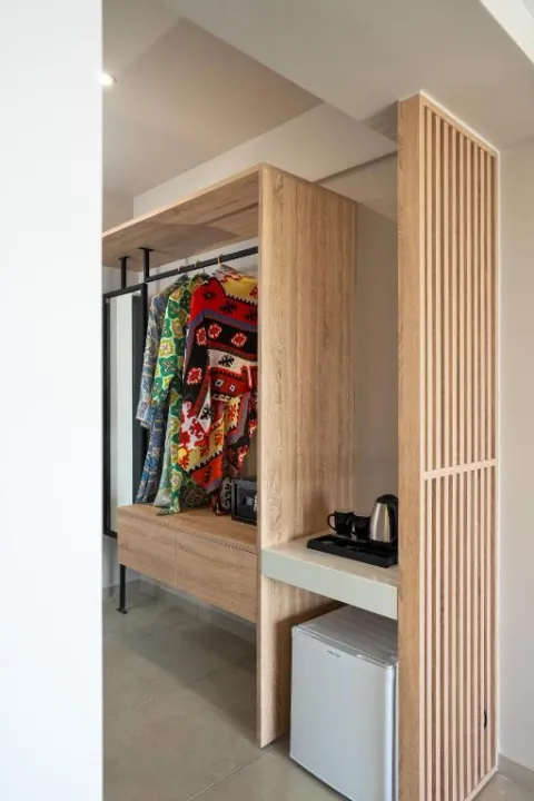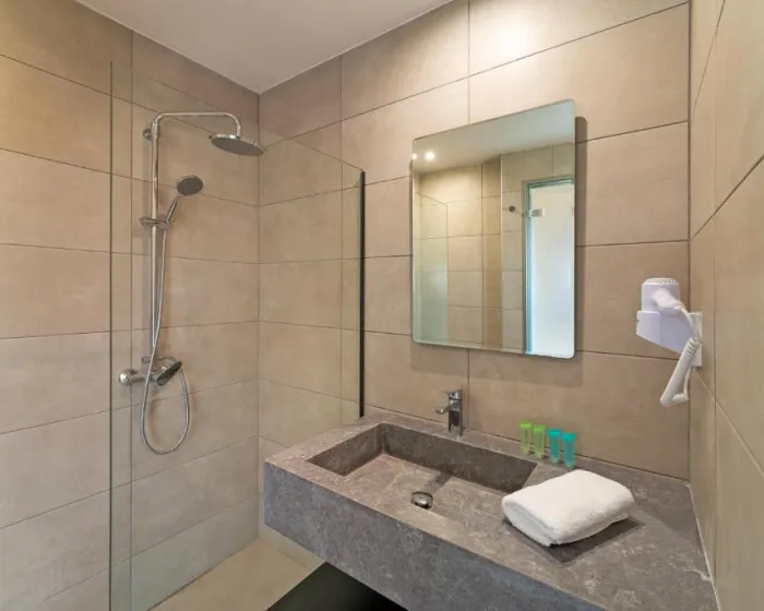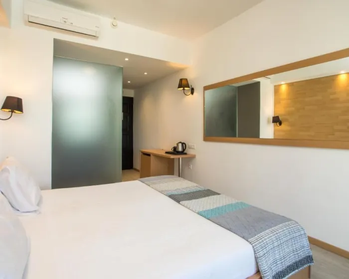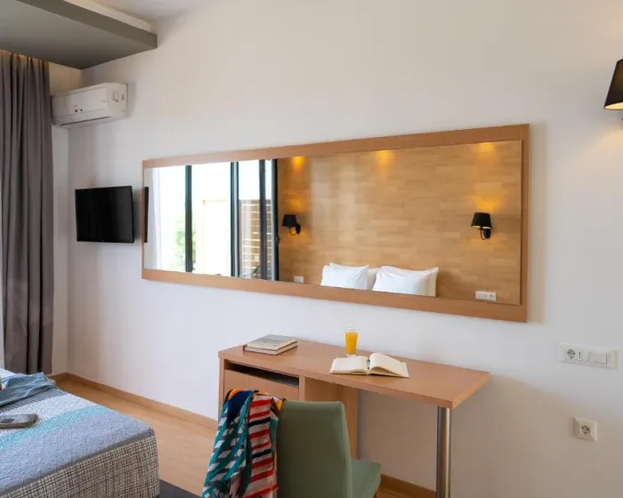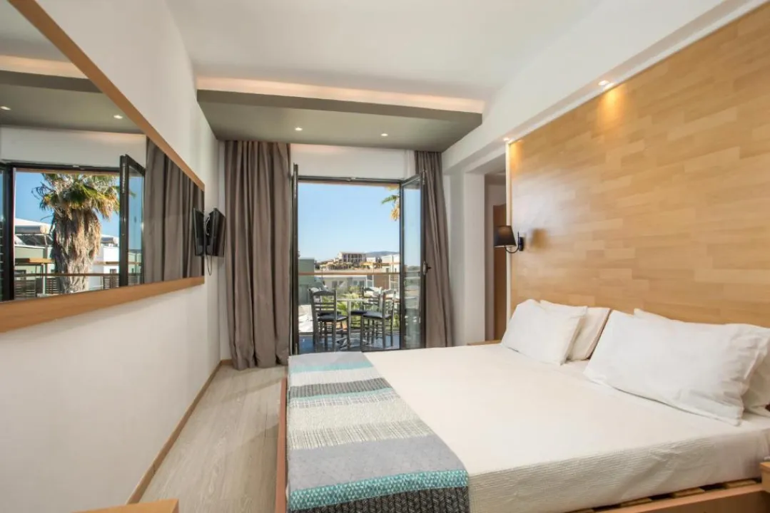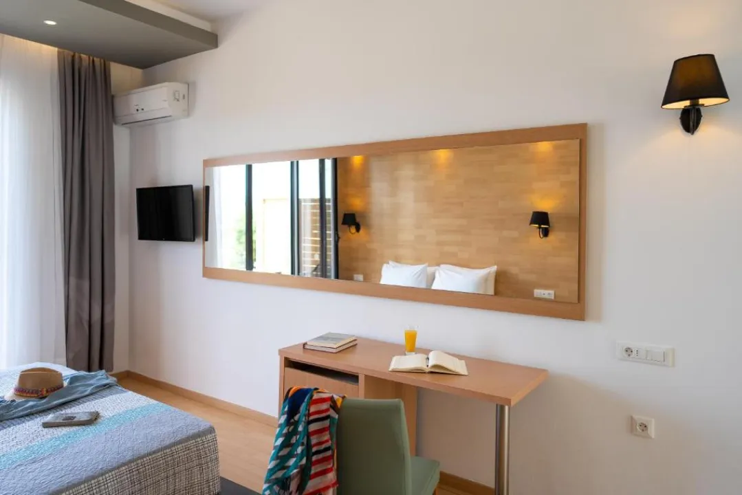 Klima uređaj obezbeđuje udobne temperature u sobama. Gosti mogu uživati u pogledu na more sa balkona ili terase. Sobe sadrže bračni krevet. Dostupni su krevetići za decu i dodatni kreveti na zahtev za mlađe goste. Sef pruža sigurno čuvanje lične imovine gostiju. Gosti će takođe pronaći aparat za kafu/čaj među standardnim funkcijama. Telefon, satelitska televizija i WiFi (bez dodatne naknade) takođe su obezbeđeni. Kupatila su opremljena tuš-kadom i fenom za kosu. Porodične sobe su dostupne za roditelje sa decom.