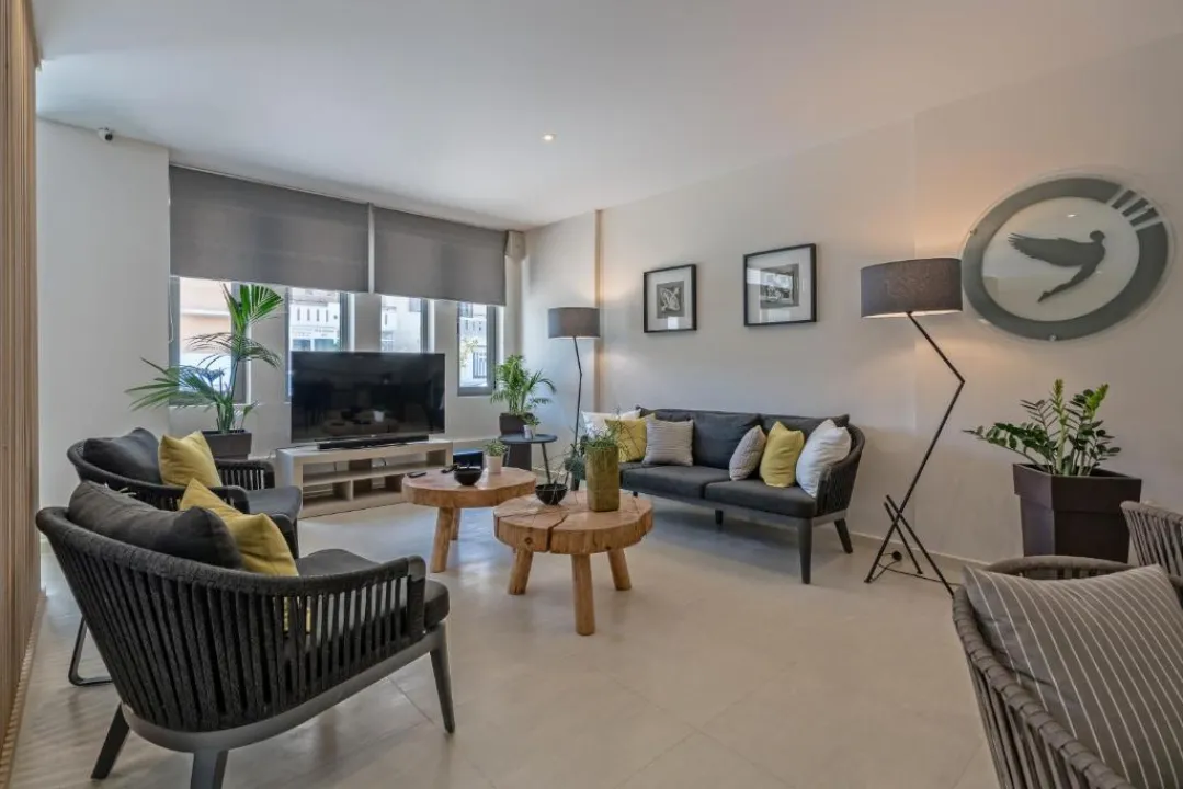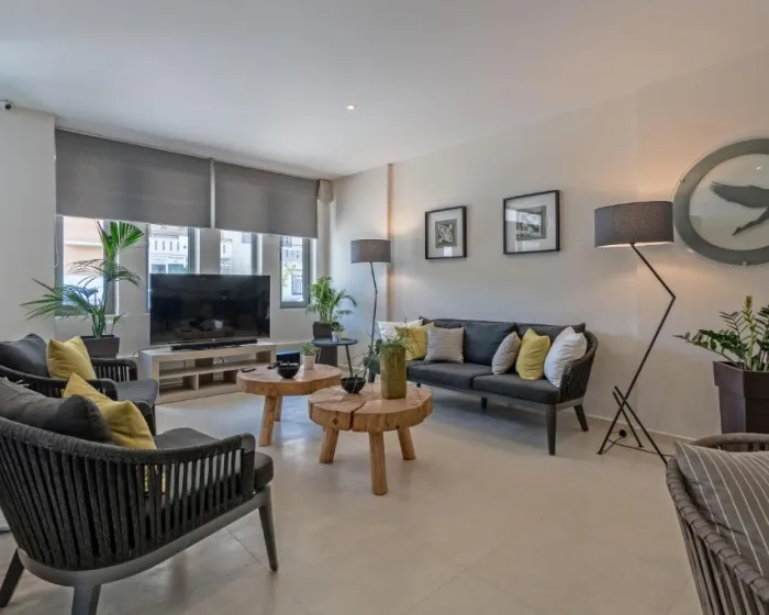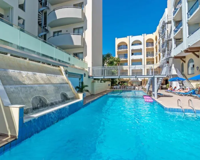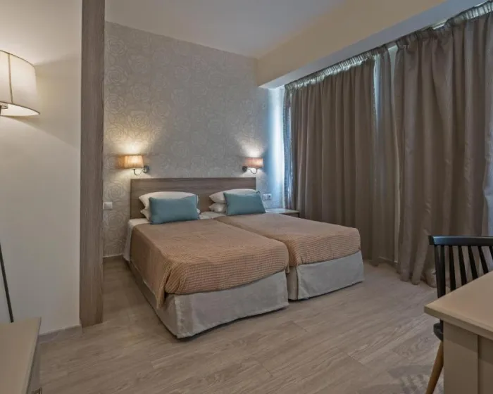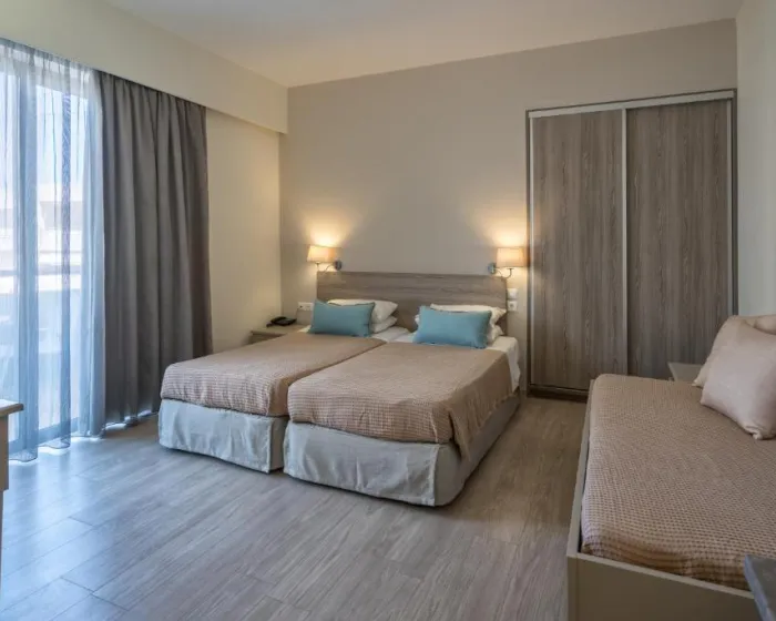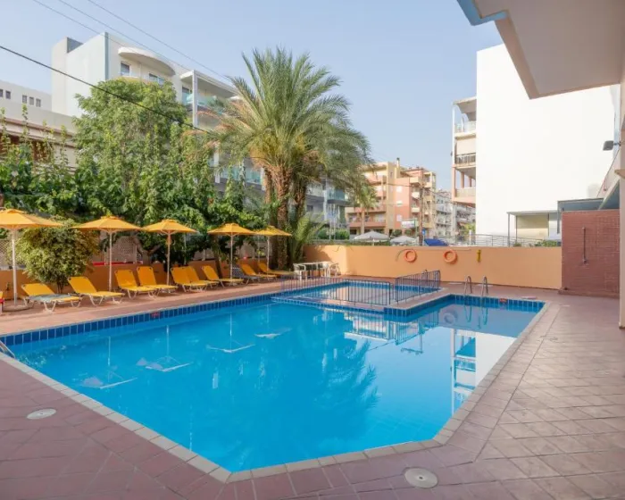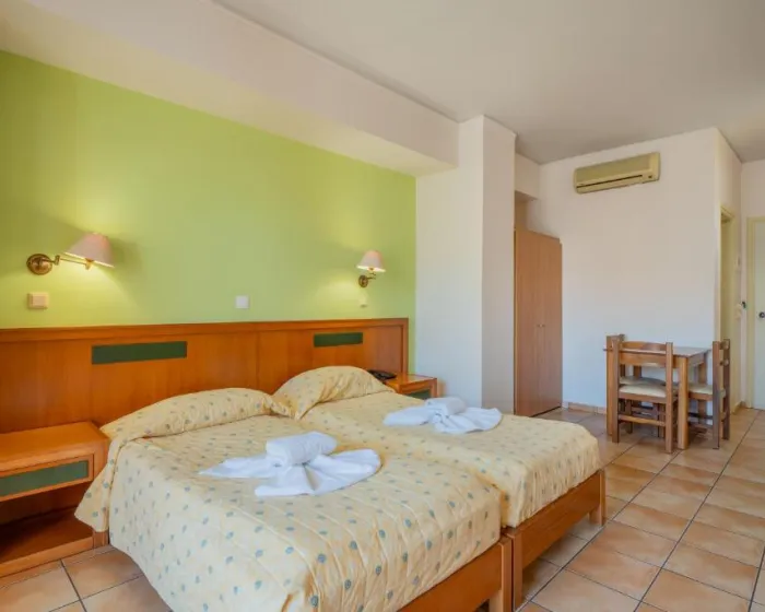 Ukupno 40 soba: Promo Rooms (~18-20 m²), Studios (~20-25 m²), Family Apartments (~35-40 m²).U sobama: opremljena mini-kuhinja, klima-uredjaj, SAT TV, telefon, kupatilo (kada/tuš), fen, sef (uz doplatu na licu mesta), mini-frižider, balkon/terasa.Promo Room 2 odvojena ležaja, opremljena mini-kuhinja.Studio 2 odvojena ležaja, kauč/sofa na rasklapanje, opremljena mini-kuhinja.Family Apartments 2 odvojena ležaja, kauč/sofa na rasklapanje, opremljena mini-kuhinja.Tip dodatnog ležaja - sofa/fotelja/krevet na rasklapanje.