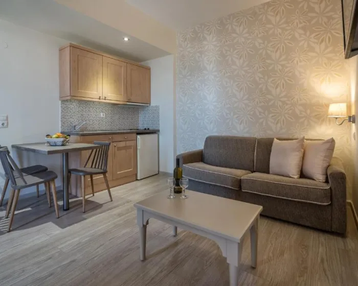 Klima uređaj i centralno grejanje obezbeđuju da sobe održavaju ugodnu temperaturu. Gosti mogu uživati u pogledu na more sa balkona ili terase. Sobe imaju kauč na razvlačenje. Dostupne su odvojene spavaće sobe. Kreveti za decu i pomoćni kreveti mogu se zatražiti za mlađe goste. Sef i minibar su takođe dostupni. Kuhinja dolazi sa frižiderom. Telefon, TV i WiFi (bez dodatne naplate) pružaju sve neophodno za udoban odmor. Fen za kosu i telefon su dostupni u kupatilima, koja su opremljena tuš kabinom i kadom. Hotel ima porodične sobe i sobe za nepušače.