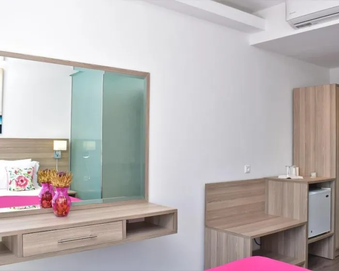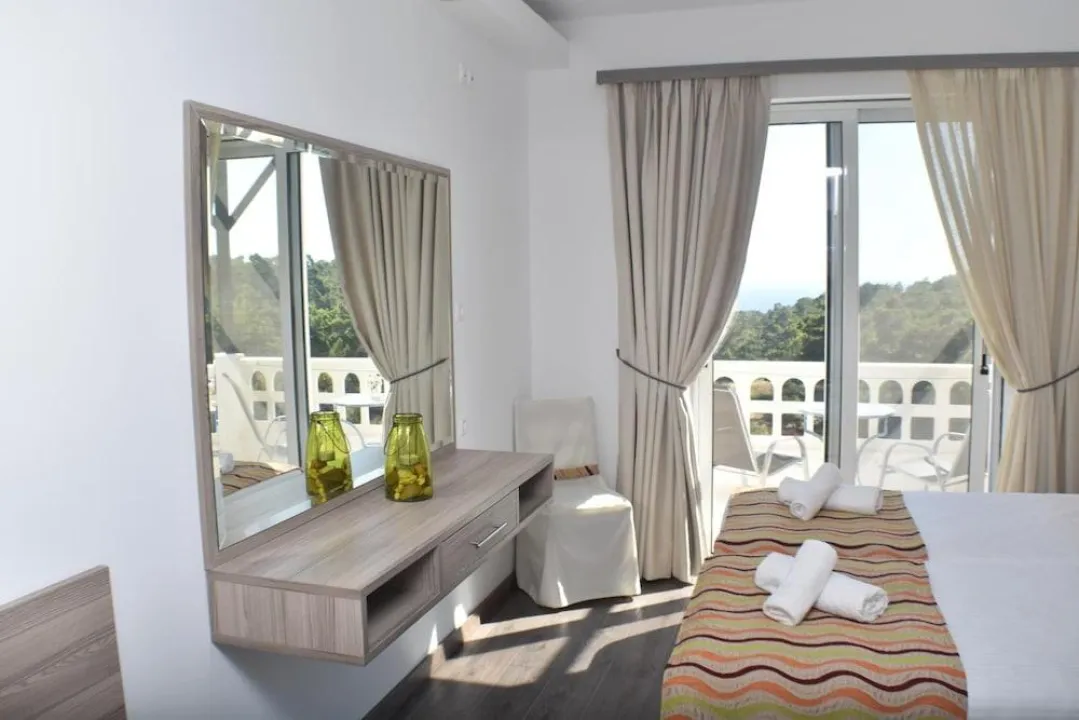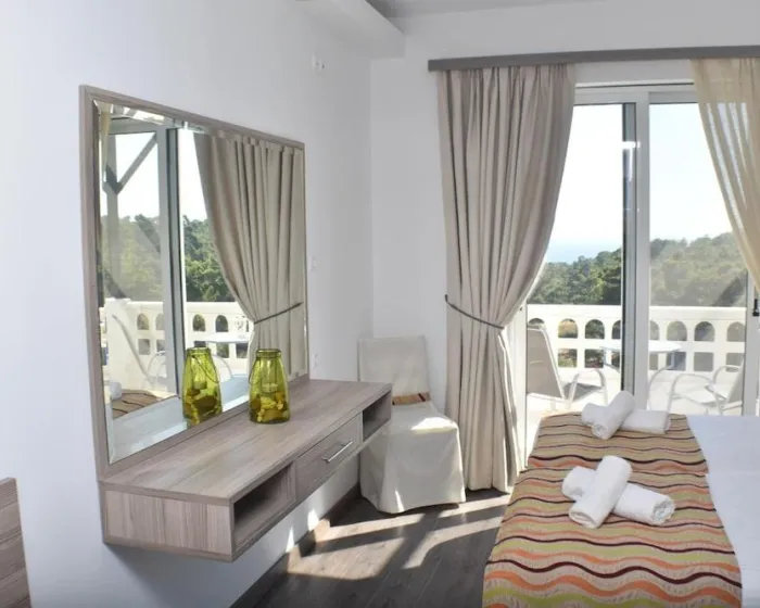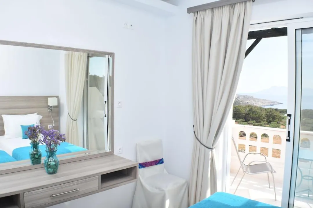 Klima uređaj i centralno grejanje osiguravaju da sobe održavaju udobnu temperaturu. Gosti mogu uživati u pogledu na more sa balkona ili terase. Sobe sadrže bračni krevet. Dostupne su odvojene spavaće sobe. Dodatni kreveti mogu biti zatraženi. Takođe su dostupni sef i radni sto. Kuhinja dolazi sa frižiderom i aparatom za kafu/čaj. Ostali sadržaji uključuju telefon i WiFi (bez dodatnih troškova). Tuš kabina i kada su uključene u kupatila. Kupatila prilagođena za osobe sa invaliditetom takođe se mogu rezervisati. Hotel ima sobe za nepušače.