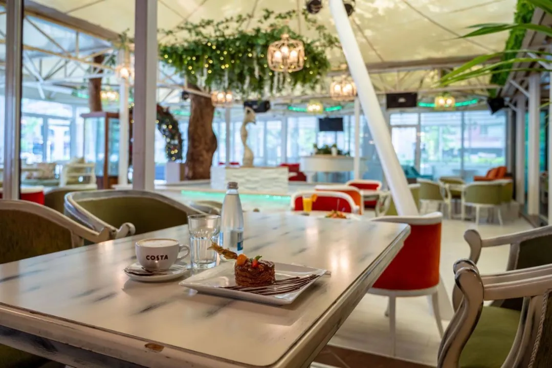 Različite opcije za obroke su dostupne, uključujući kafić i bar. Nekad je restoran za nepušače sa klima uređajem, hranilicama i posebnom zonom za pušače na raspolaganju gostima. Kontinentalni doručak, ručak i večera mamitiće goste sa širokim izborom jela (večera a la carte). Dijetetski obroci i dečiji obroci se mogu pripremiti po zahtevu. Hotel takođe nudi posebne opcije keteringa.