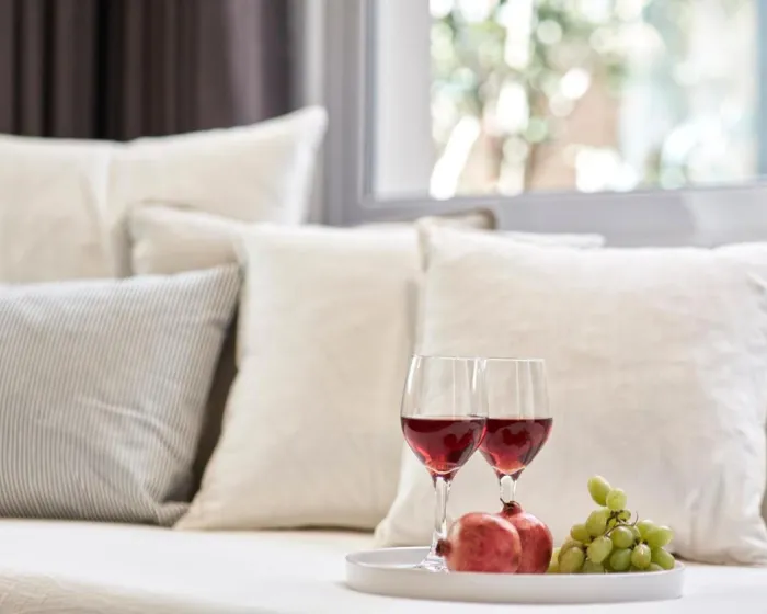 Sobe sadrže dnevnu sobu, kuhinju i kupatilo. Klima uređaj osigurava udobne temperature. Gosti mogu uživati u pogledu na more sa balkona ili terase. Sobe imaju bračni krevet ili sofu. Dostupne su i odvojene spavaće sobe. Kreveti za decu i pomoćni ležajevi mogu biti zatraženi za mlađe goste. Sef, mini bar i radni sto su takođe dostupni. Kuhinjica dolazi sa frižiderom i aparatom za čaj/kafu. Pegla je obezbeđena radi gosteove praktičnosti. Takođe su obezbeđeni telefon, TV, DVD plejer i WiFi (bez dodatne naplate). Papuče su uključene. Kupatila su opremljena tušem, kadom i đakuzijem. Fen za kosu i bade mantili su dostupni za svakodnevnu upotrebu. Za dodatnu udobnost u kupatilima, gostima su ponuđeni kozmetički proizvodi. Hotel ima porodične sobe i sobe za nepušače.