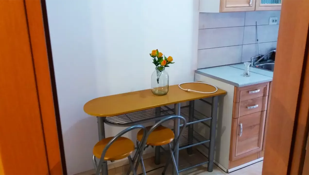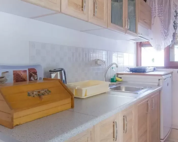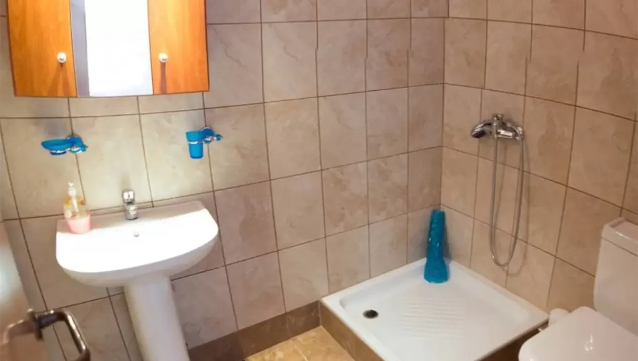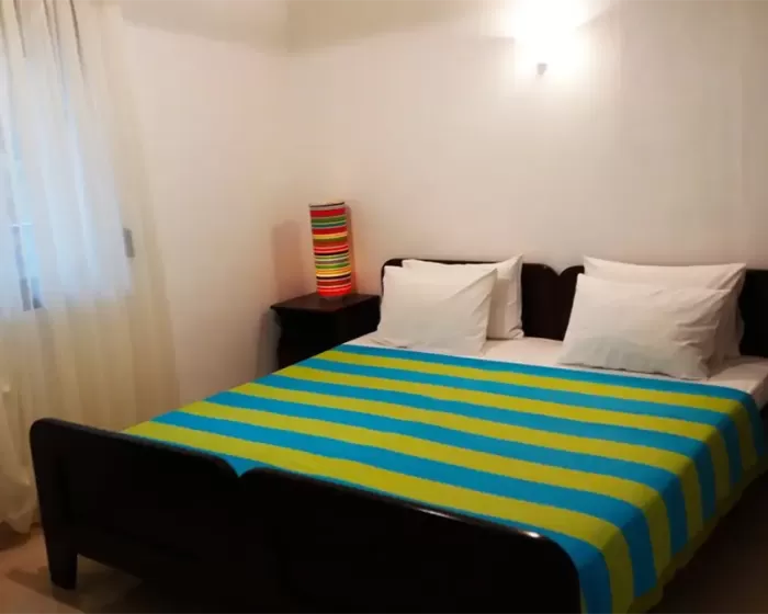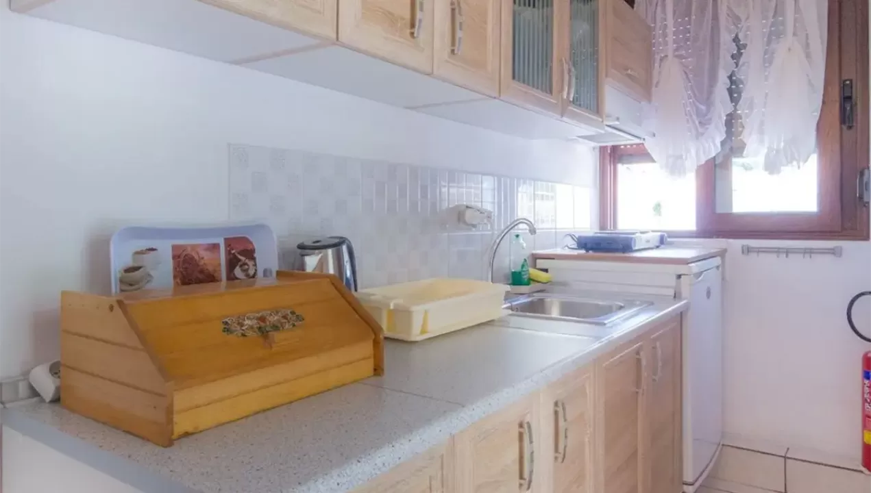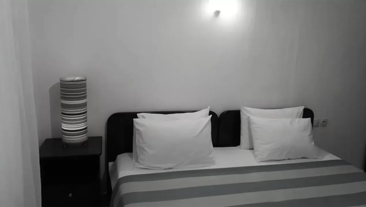 Tip smeštaja:1/2 studio - u jednoj prostoriji čajna kuhinja i jedan bračni ležaj.1/4 duplex apartman - u jednoj prostoriji jedan bračni, u drugoj prostoriji drugi bračni ležaj, odvojena kuhinja i kupatilo.U pojedinim slučajevima moguća su odstupanja mera ležaja od našeg standarda. Grčki standard za ležaj je 185 cm sa 75-80 cm, a bračni ležaj (dve osobe) 185-200 cm sa 120-155 cm.